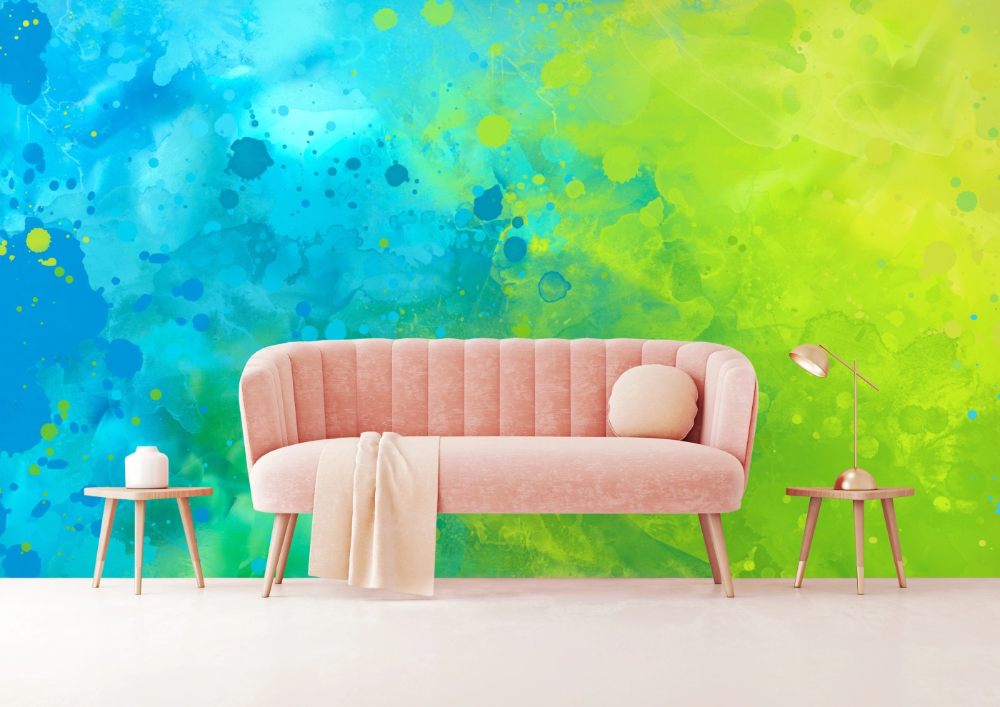 Fototapete Lebhafte türkis und limetten aquarellspritzer