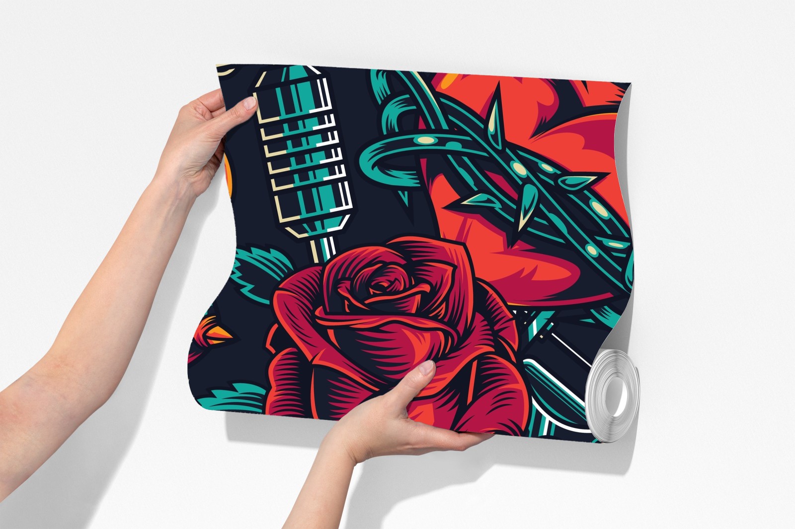 Fototapete kräftiges tätowierungsmuster mit rosen