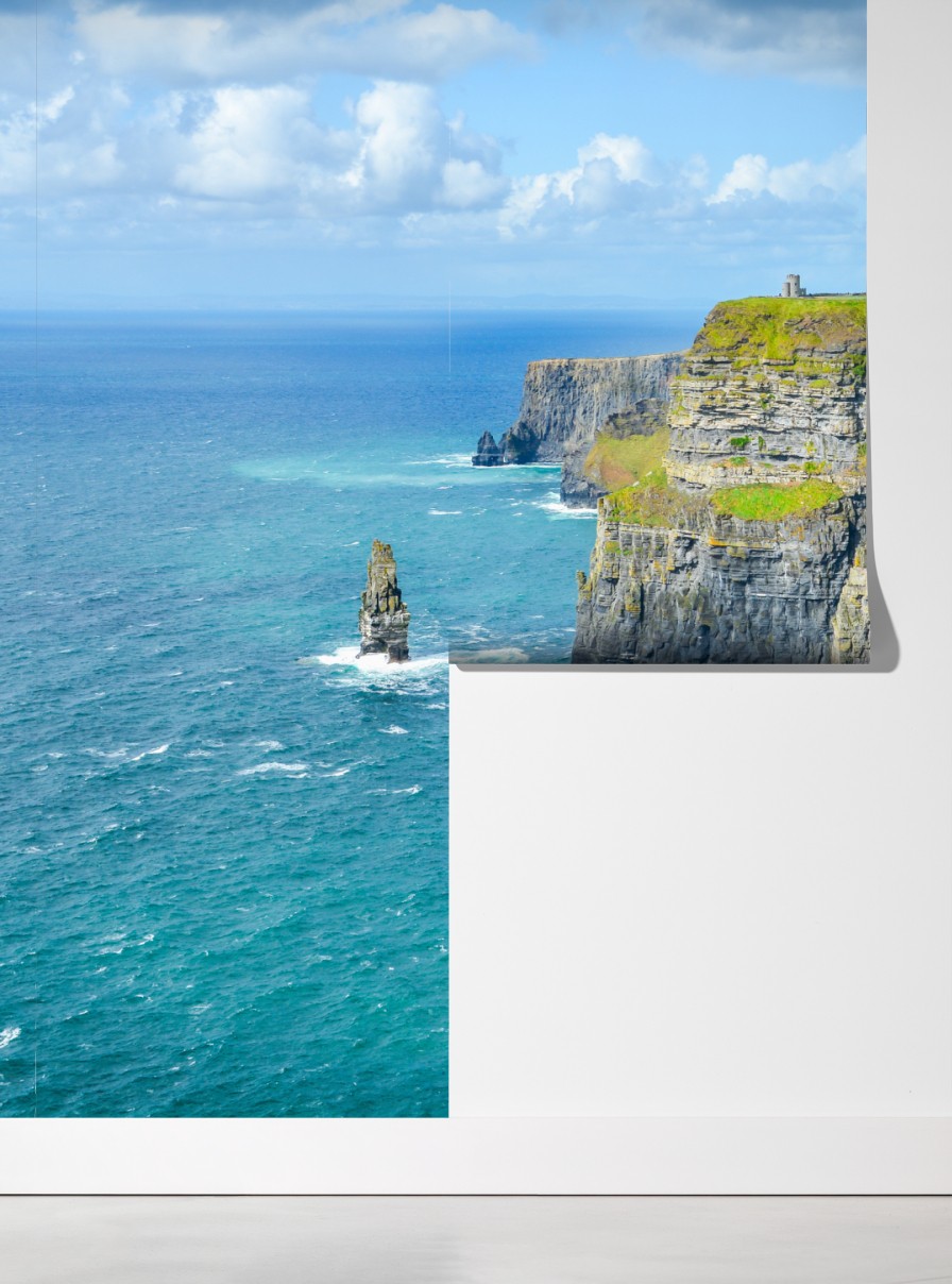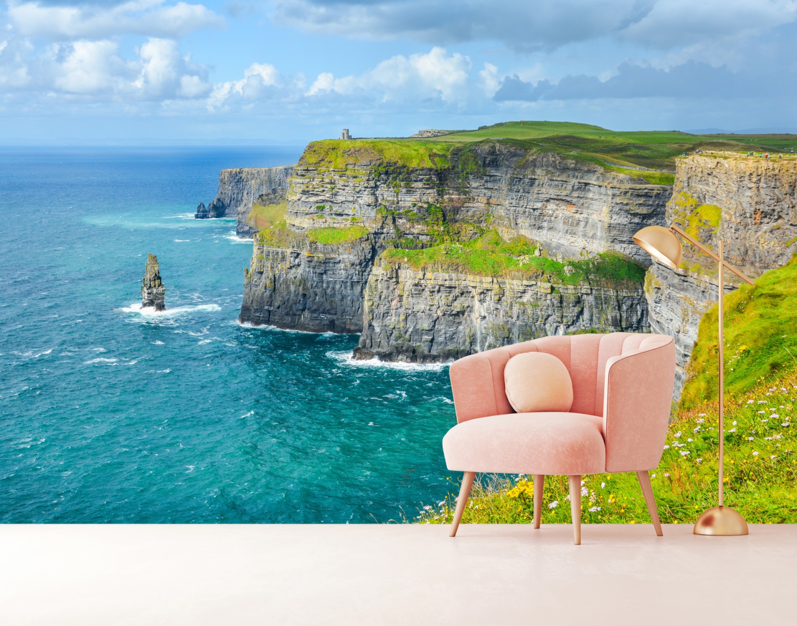 Atemberaubende Küstenklippen mit türkisblauem Meer und sattgrünen Wiesen schaffen einen beruhigenden Blickfang für jeden Raum.