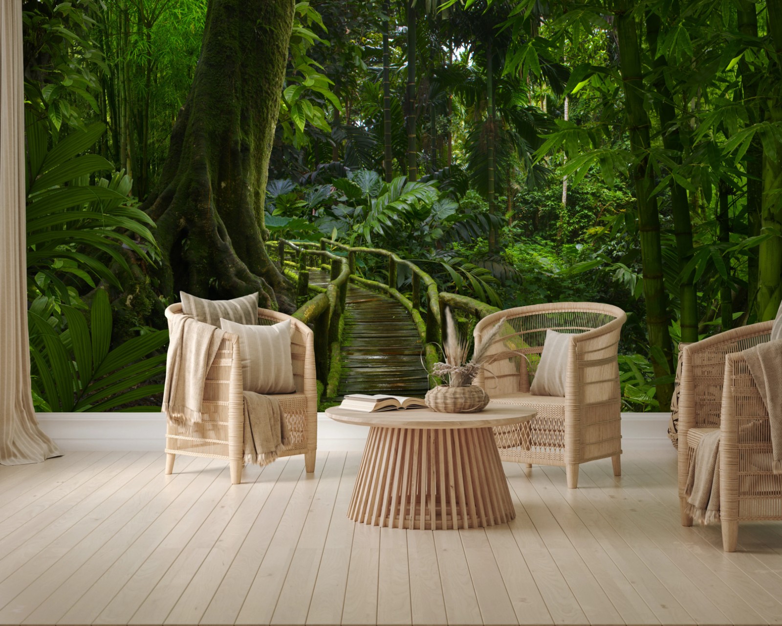 Fototapete Ruhiger dschungelsteg durch üppigen regenwald