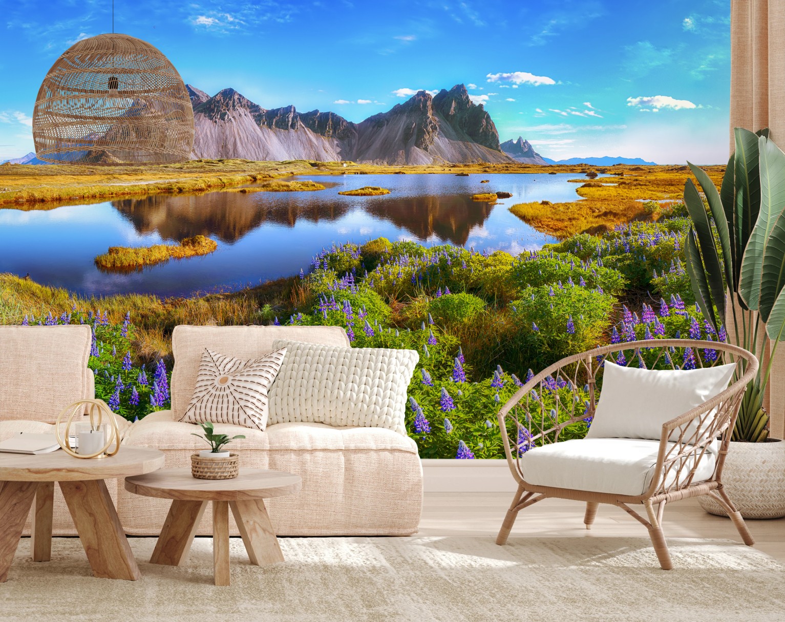 Fototapete Lebendige lupinenwiesen bei Vestrahorn, Island