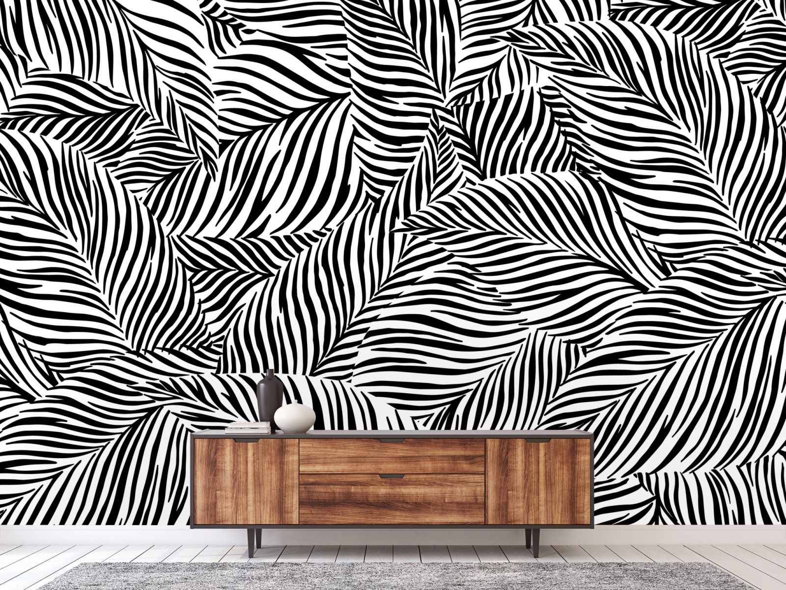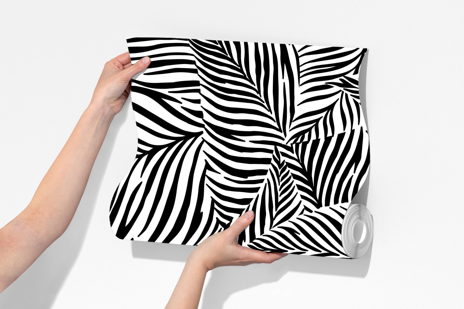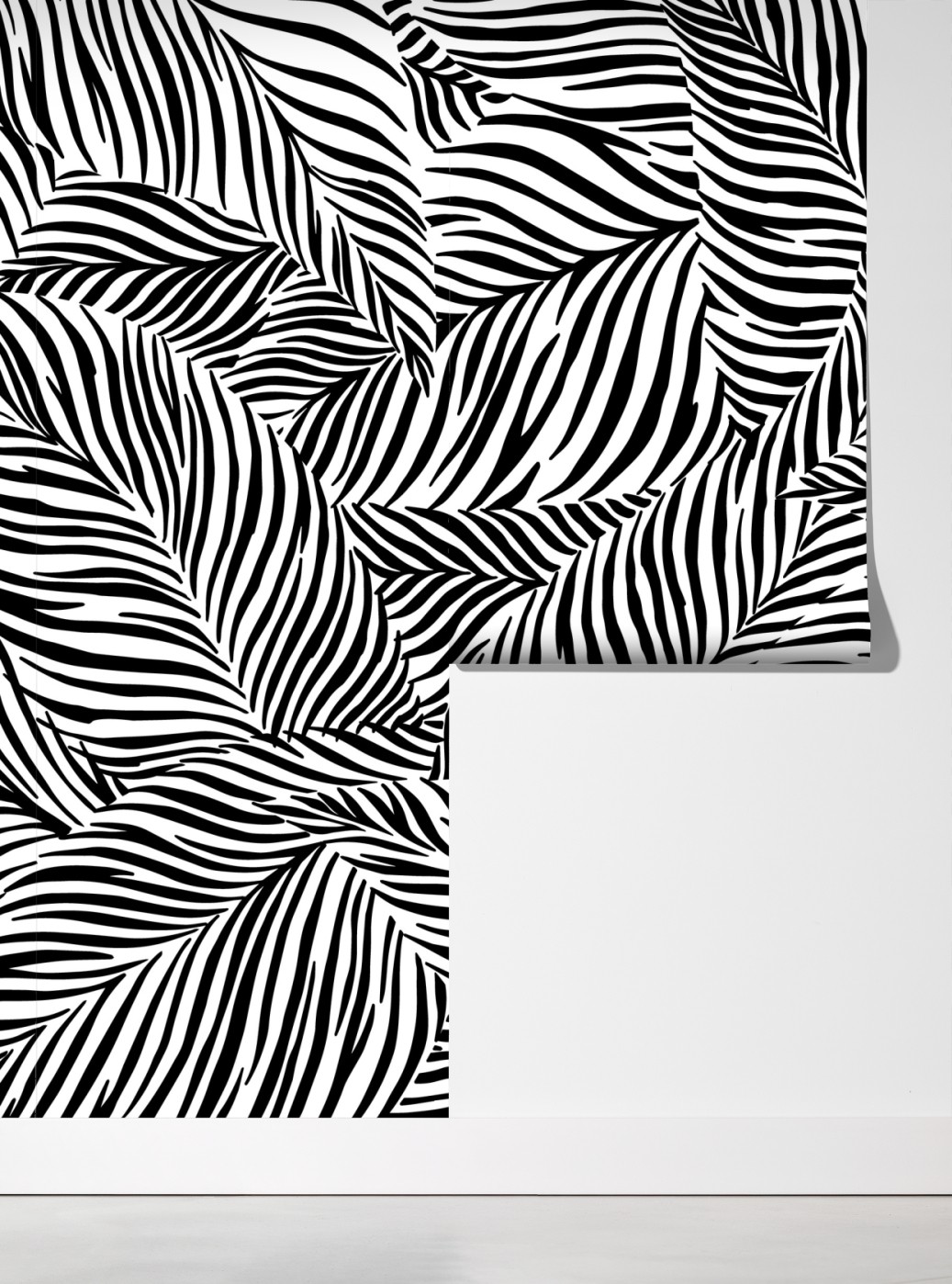 Bringen Sie einen kräftigen monochromen Akzent in Ihr Zuhause mit diesem grafischen tropischen Blattmuster, das modernen Charakter verleiht.
