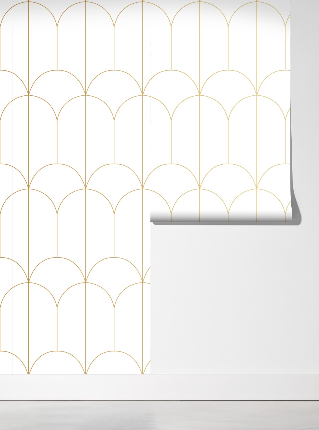 Elegantes goldenes Art-Deco-Muster, das zeitlosen Luxus und minimalistische Raffinesse in jedes Interieur bringt.