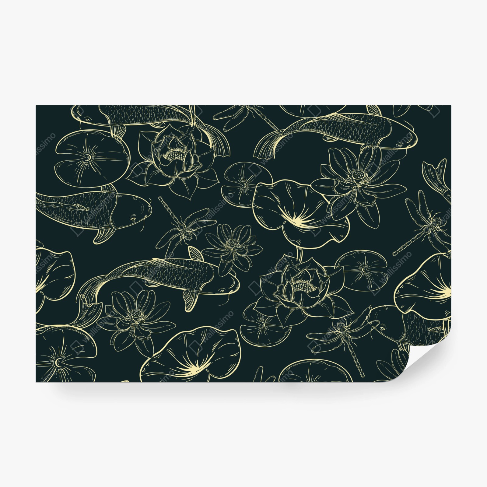 Fototapete Handgezeichnetes koi- und lotusmuster