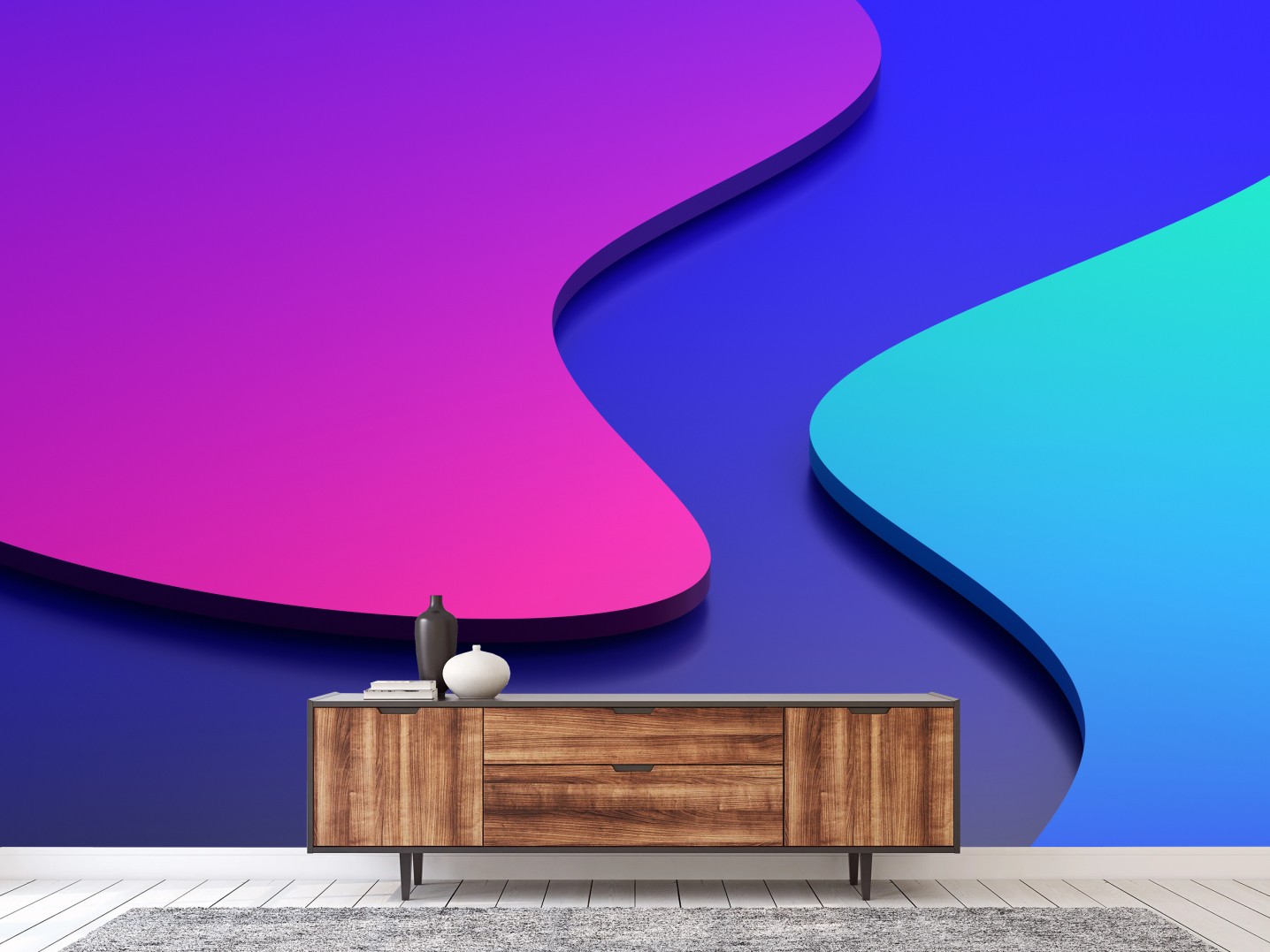 Fototapete Leuchtende lila-blaue abstrakte 3d-formen