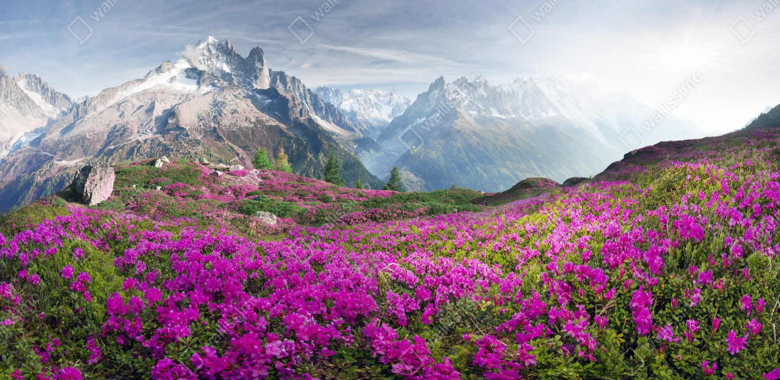 Fototapete alpine rhododendronwiese bei Mont Blanc