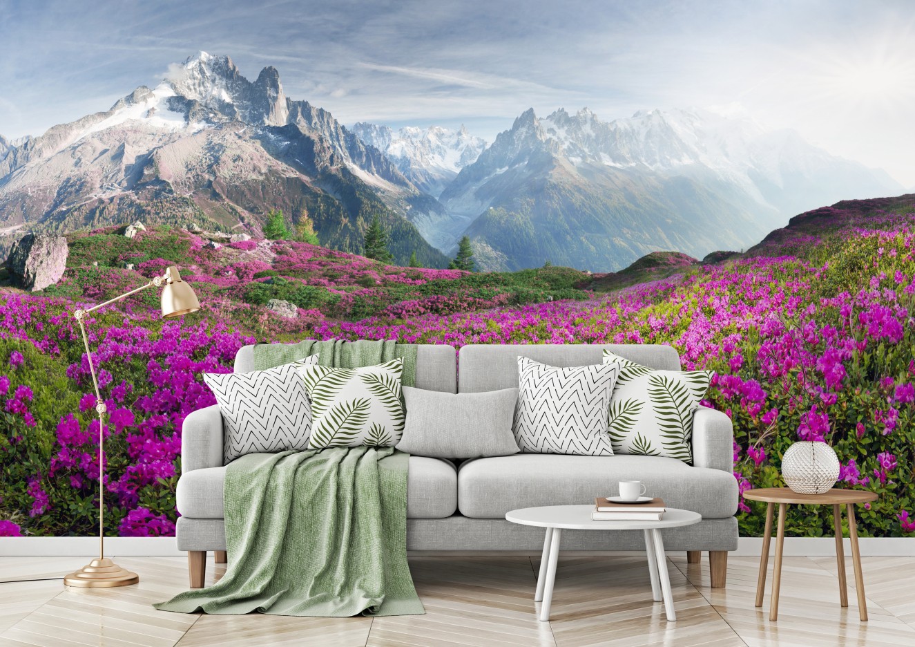 Fototapete Alpine rhododendronwiese bei Mont Blanc