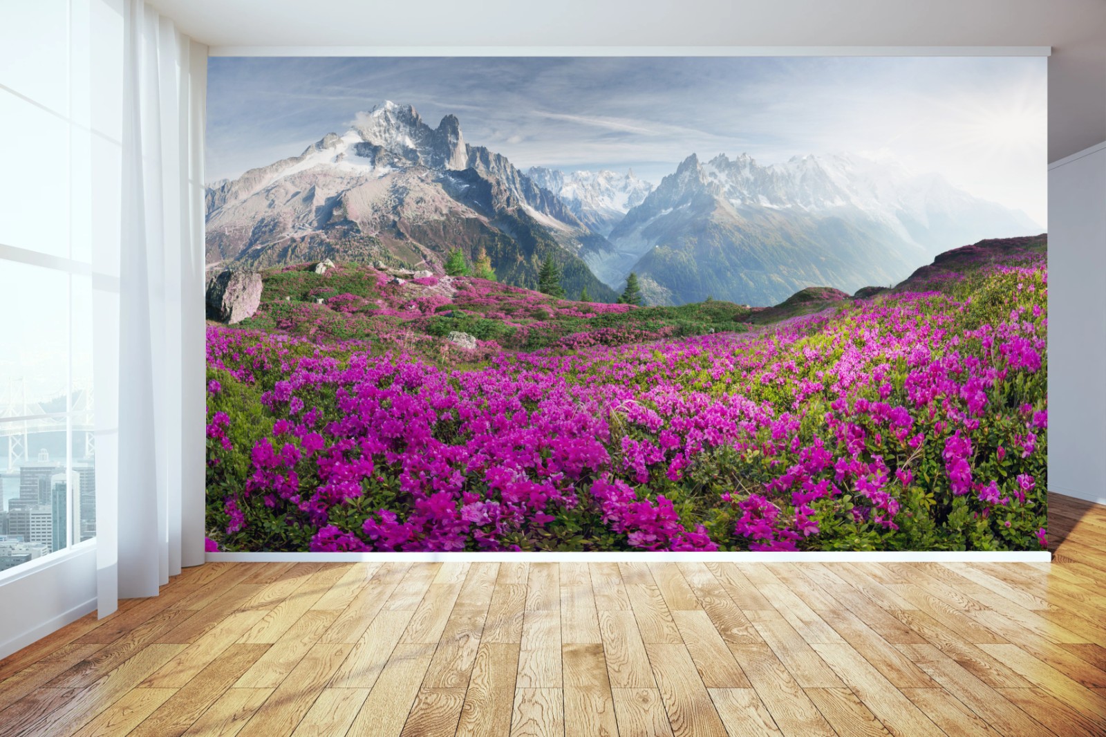 Fototapete Alpine rhododendronwiese bei Mont Blanc