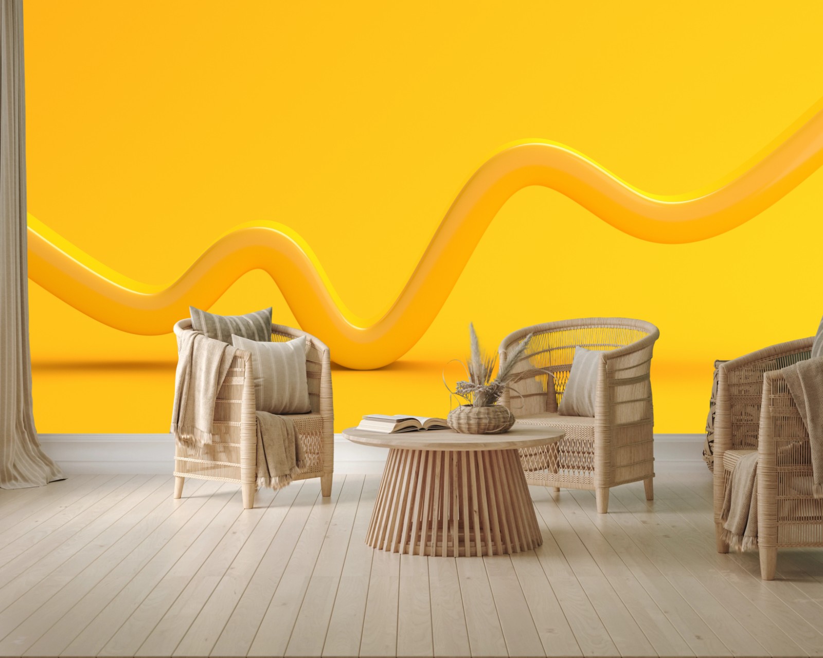 Fototapete Sonnige gelbe 3d-abstrakte kurve