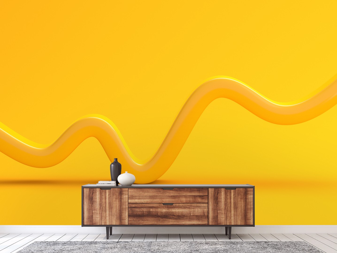 Fototapete Sonnige gelbe 3d-abstrakte kurve