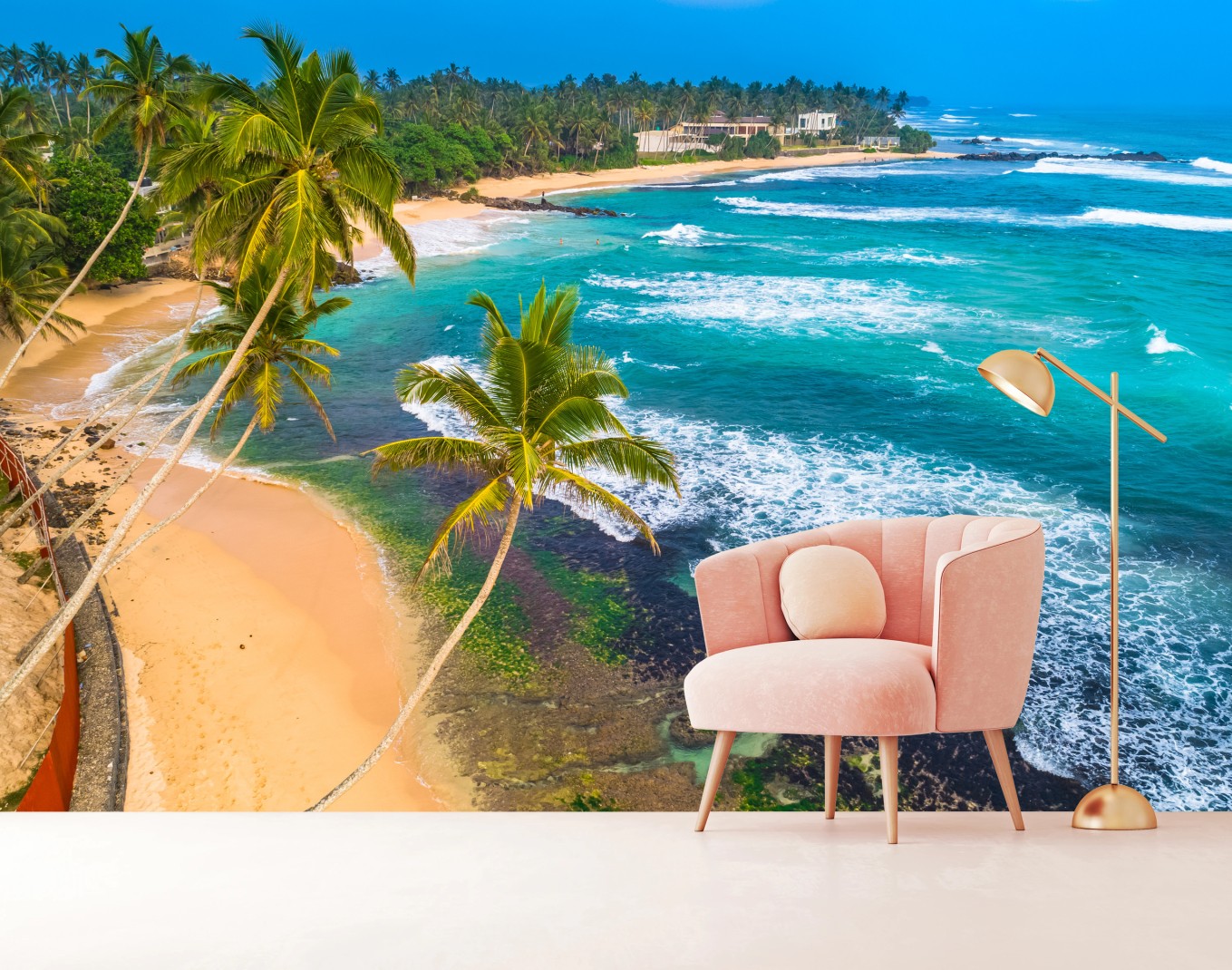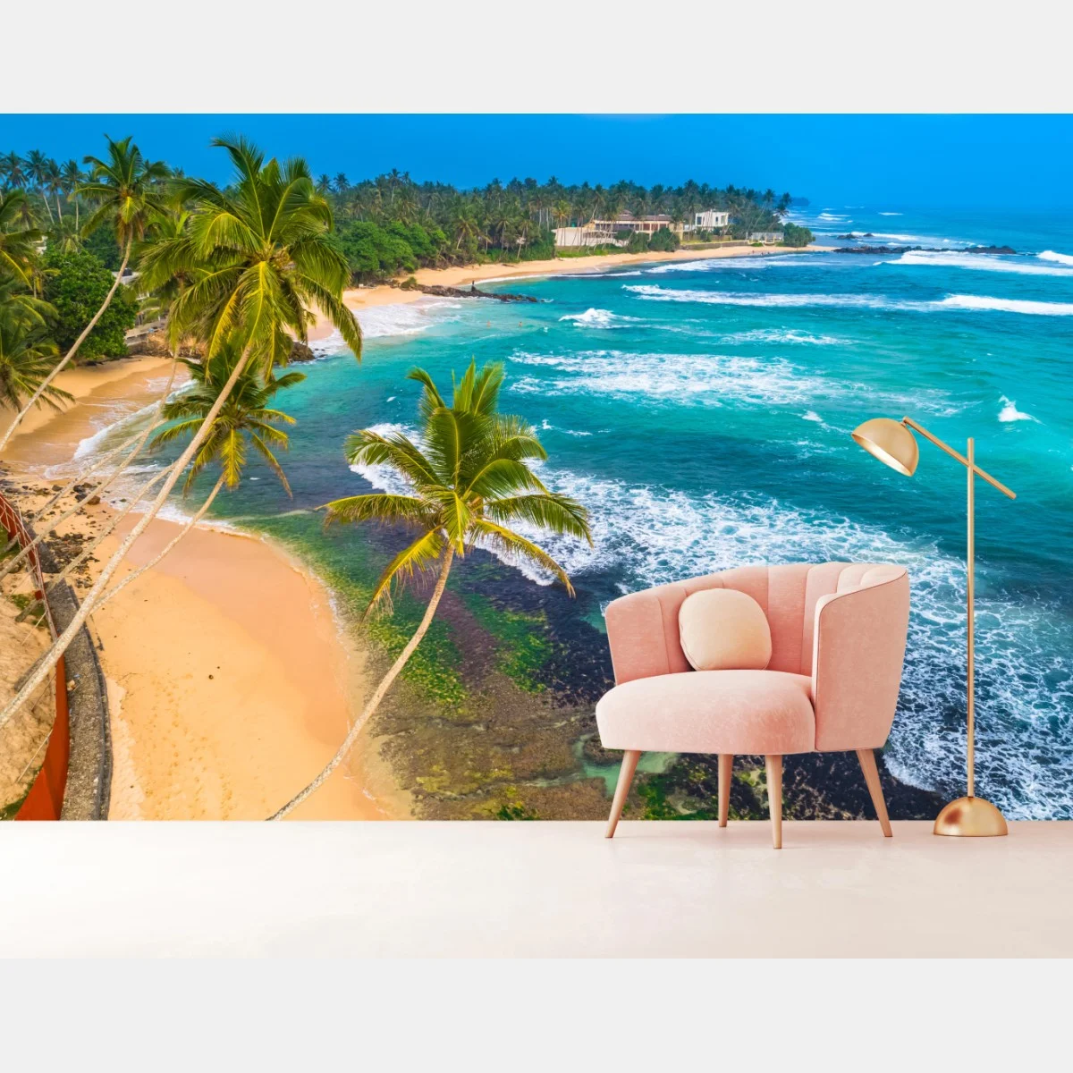 Fototapete Türkisfarbene tropische küste mit palmen