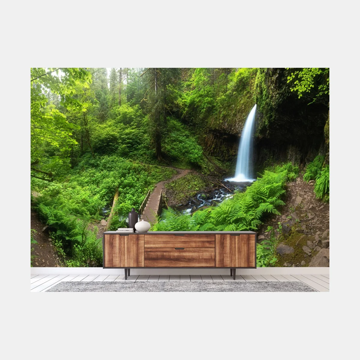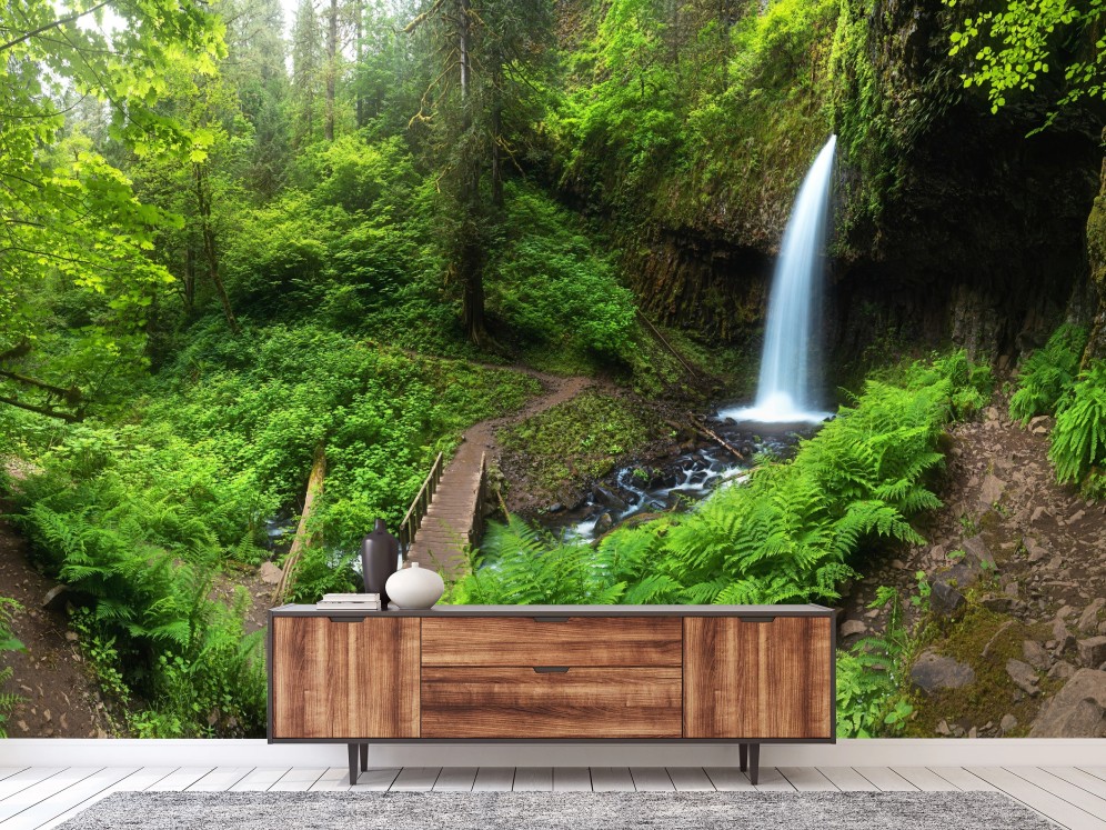 Fototapete Üppiger waldwasserfall panorama
