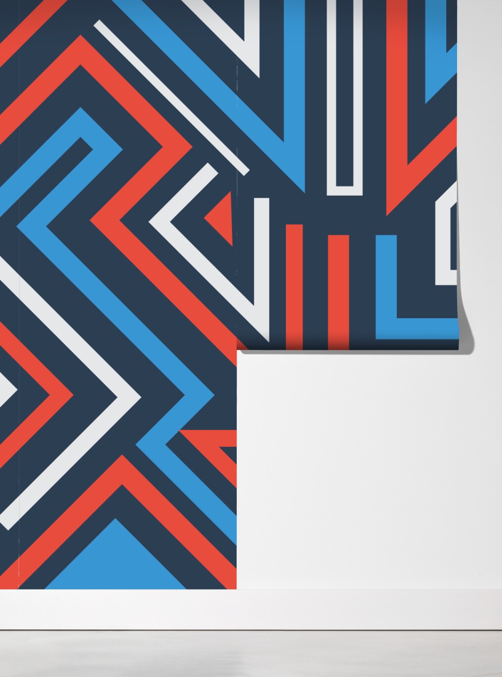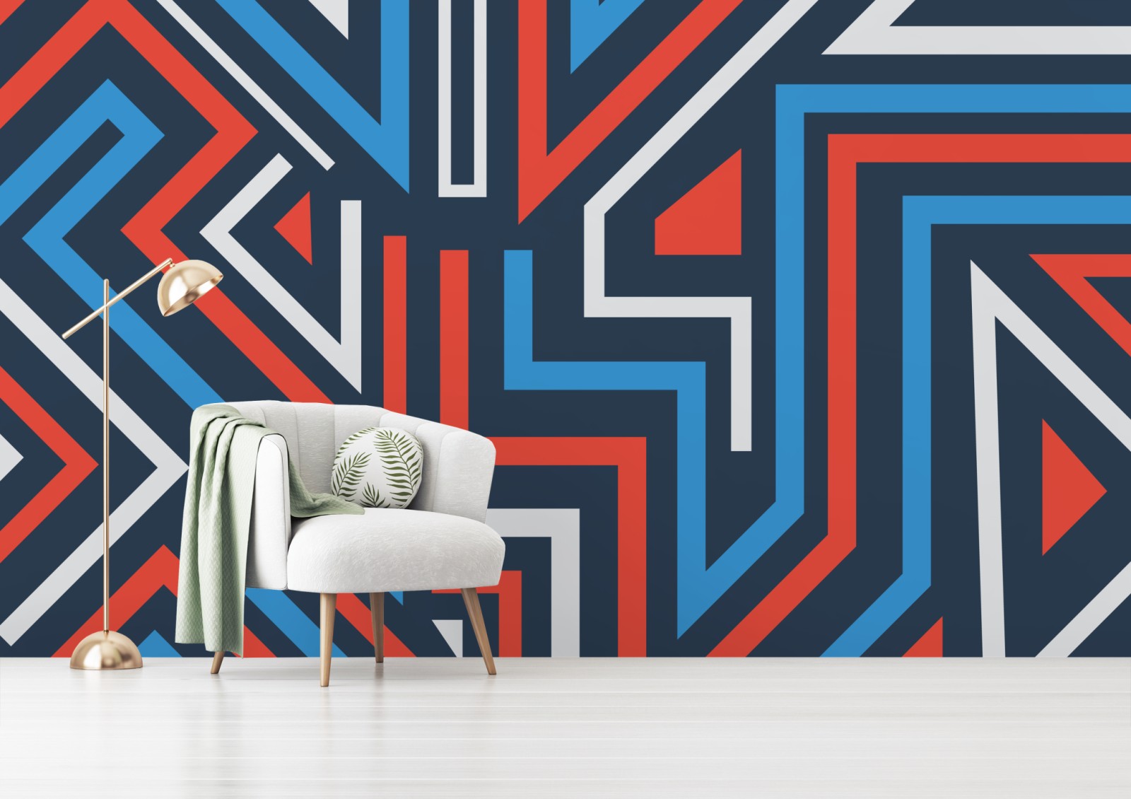 Kräftiges geometrisches Muster bringt moderne urbane Energie in jeden Raum mit klaren Linien und kräftigen Farben.