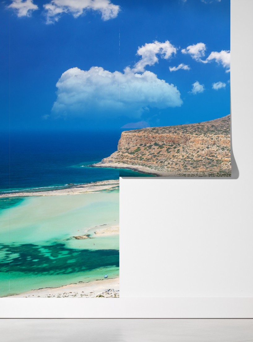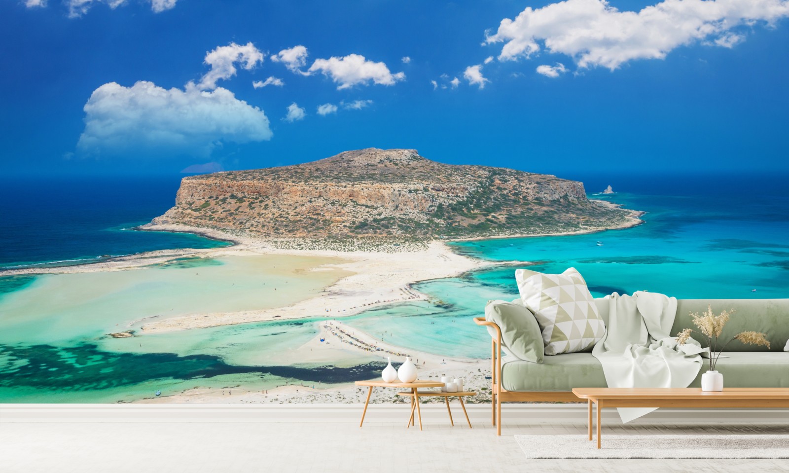 Bringen Sie die beruhigende Schönheit von Balos Strand in Ihren Raum mit lebendig türkisfarbenem Wasser, sonnenbeschienenem Sand und ruhiger Inselpanorama.