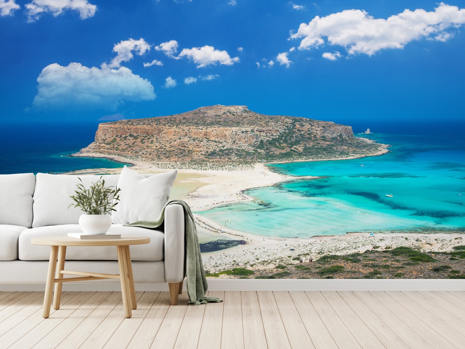 Bringen Sie die beruhigende Schönheit von Balos Strand in Ihren Raum mit lebendig türkisfarbenem Wasser, sonnenbeschienenem Sand und ruhiger Inselpanorama.MehrWeniger