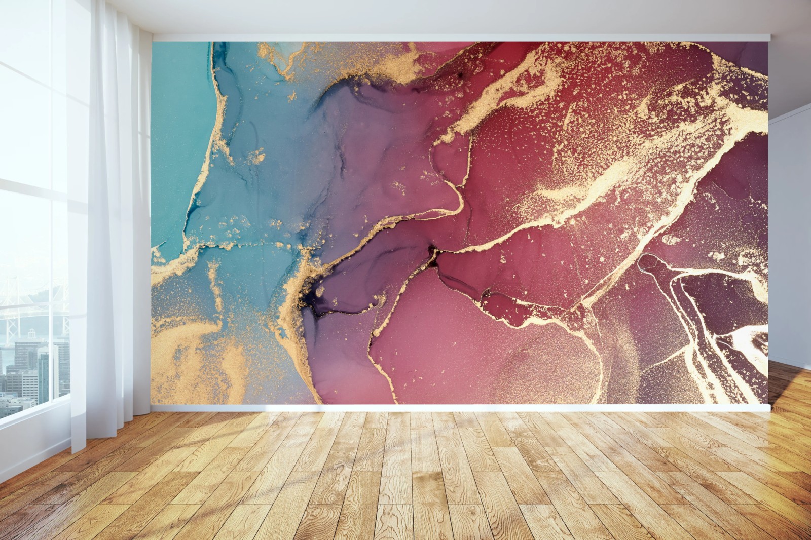 Fototapete Abstraktes marmoriertes bild in türkis und lila mit gold