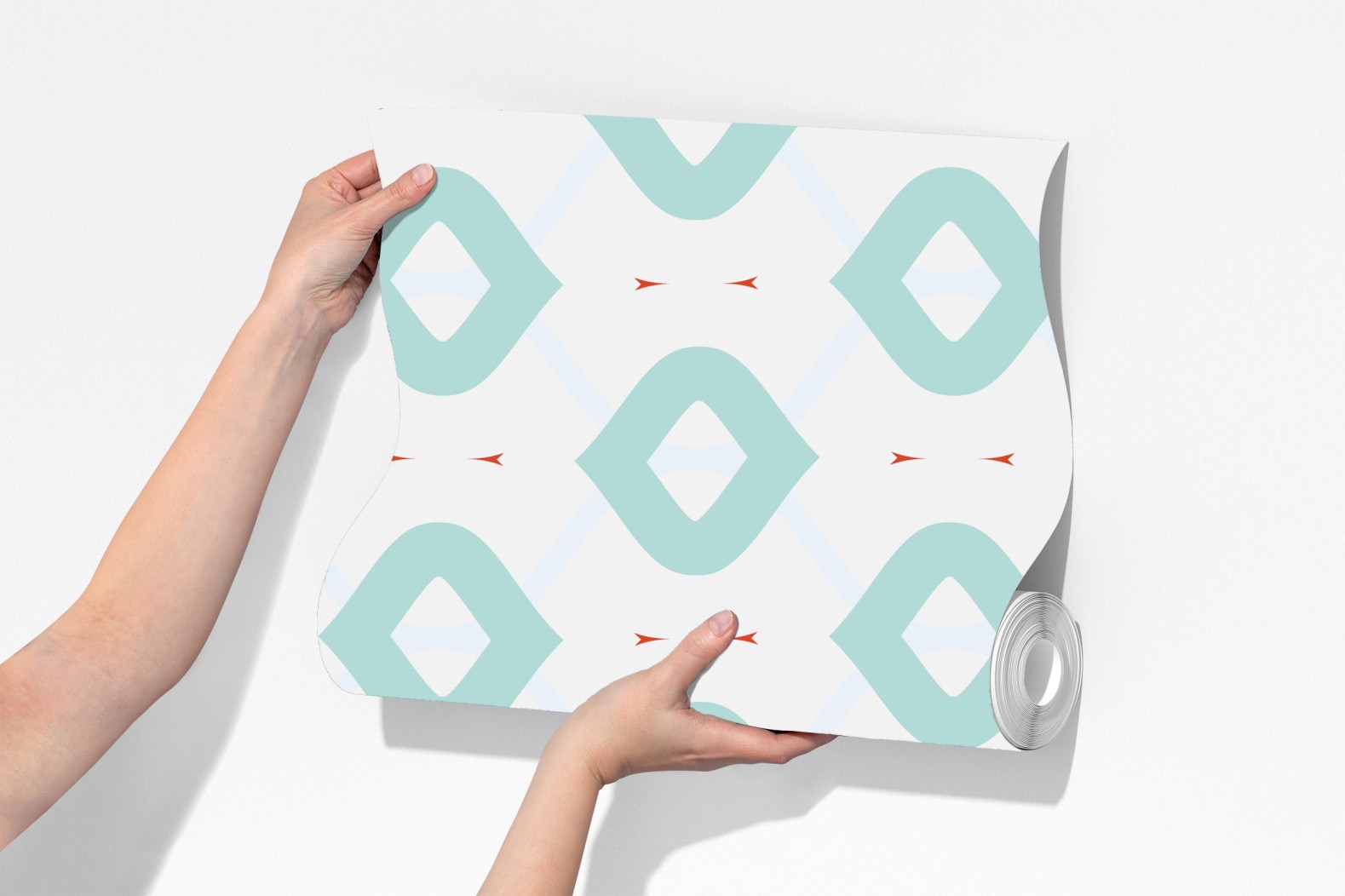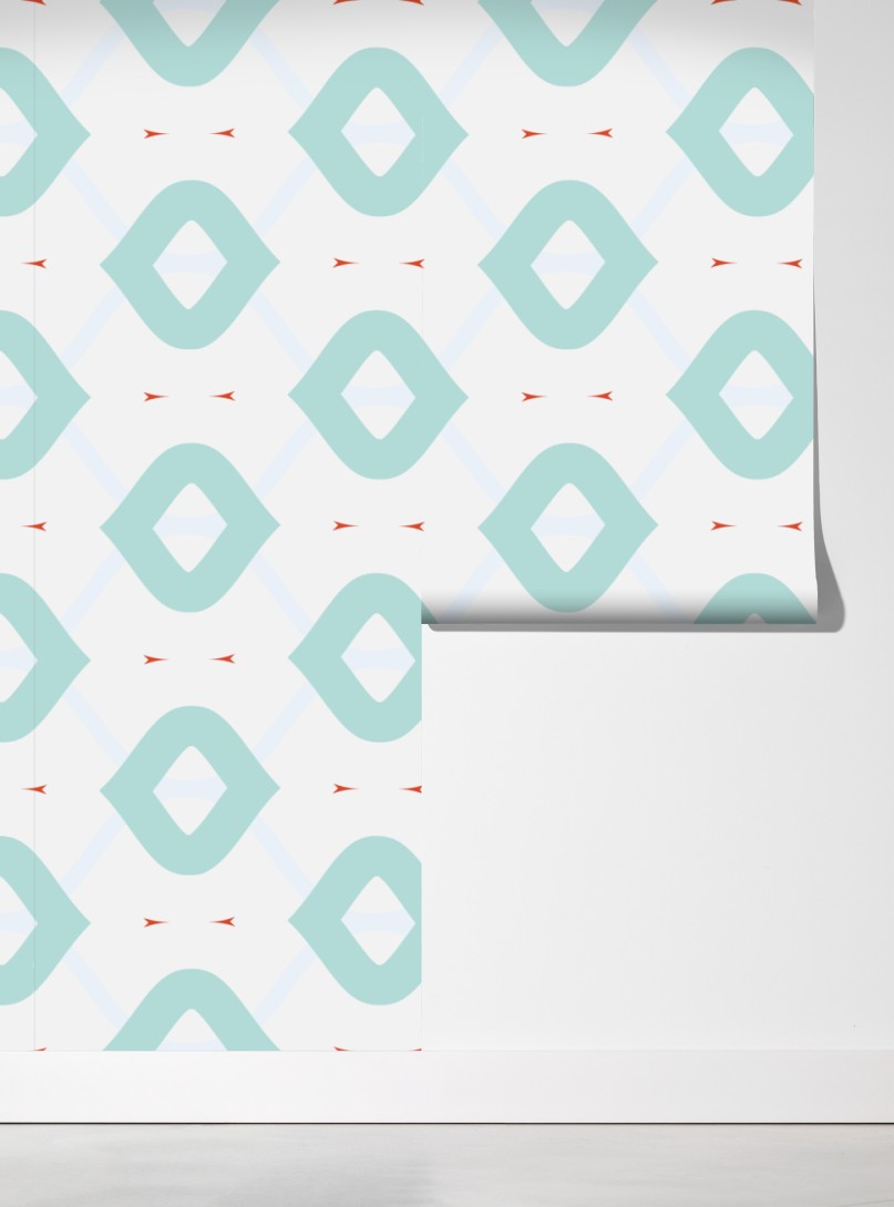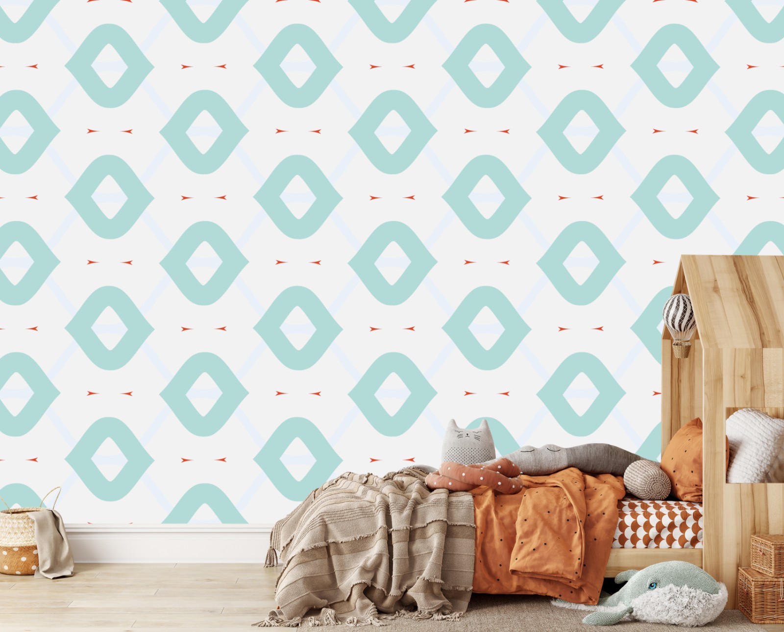 Erfrischen Sie den Raum mit einem beruhigenden türkisfarbenen geometrischen Muster, das moderne Schlichtheit und verspielten Charme verleiht.