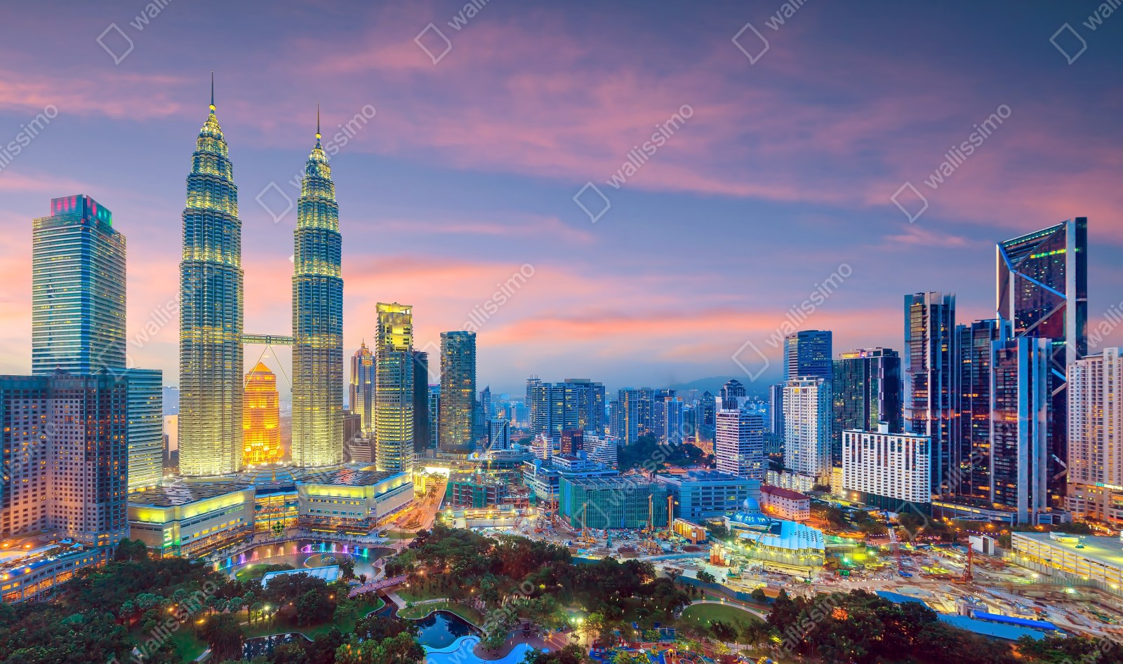 Fototapete Kuala Lumpur stadtpanorama bei dämmerung