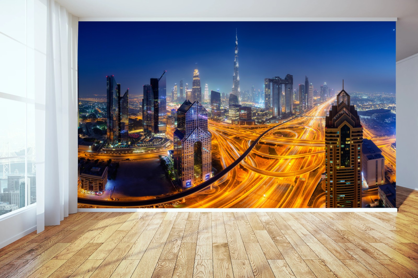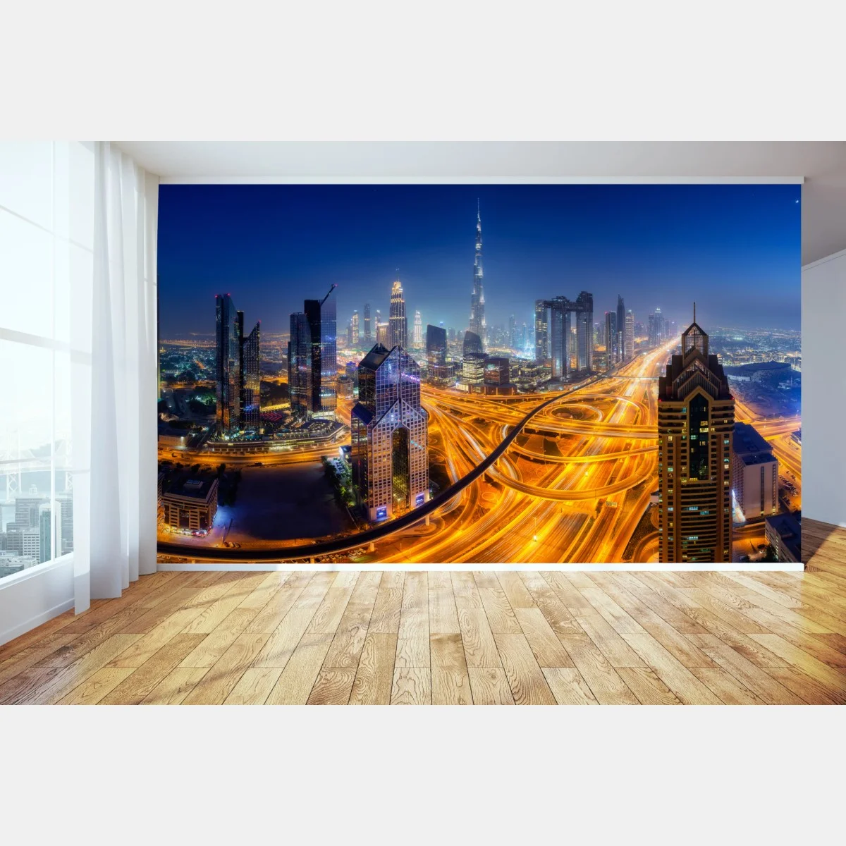 Fototapete Panorama der nächtlichen skyline von Dubai