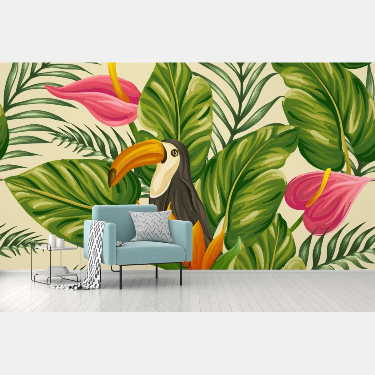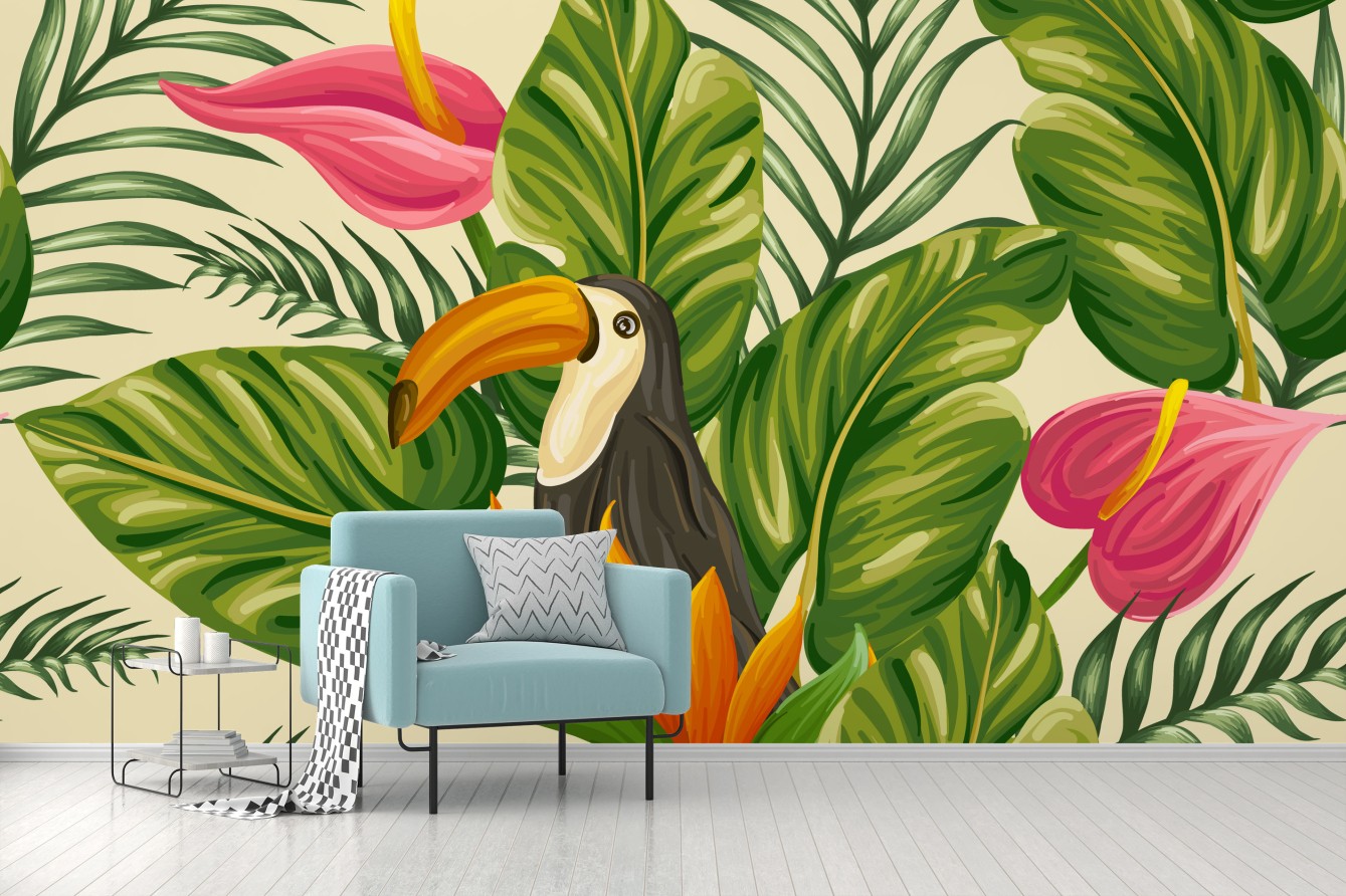 Fototapete Tropisches botanisches muster mit tukan