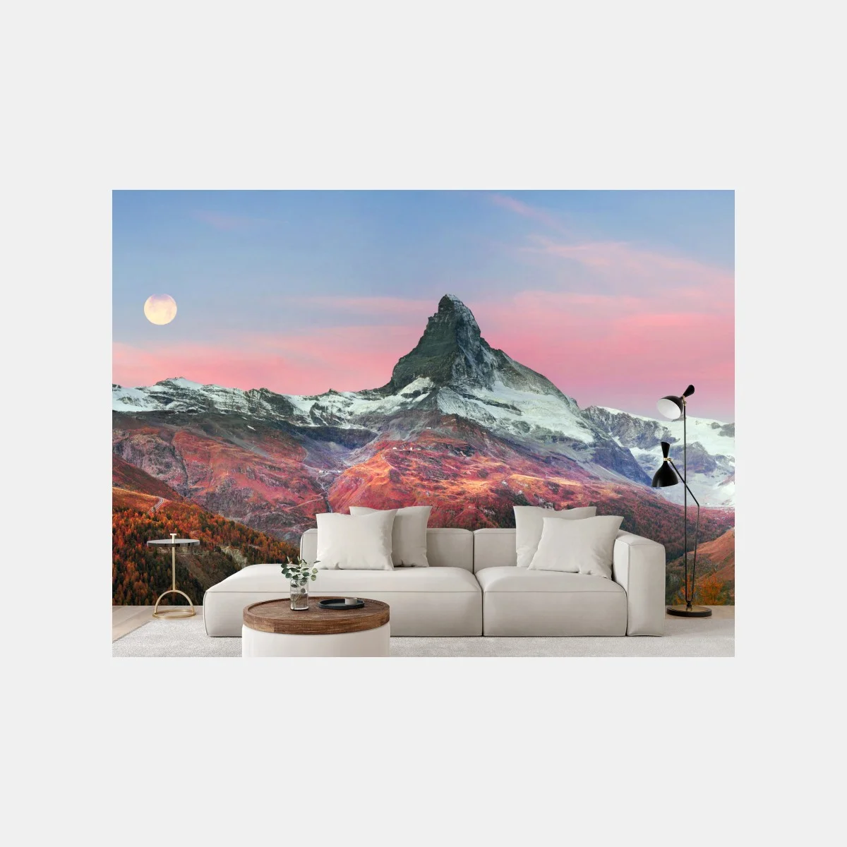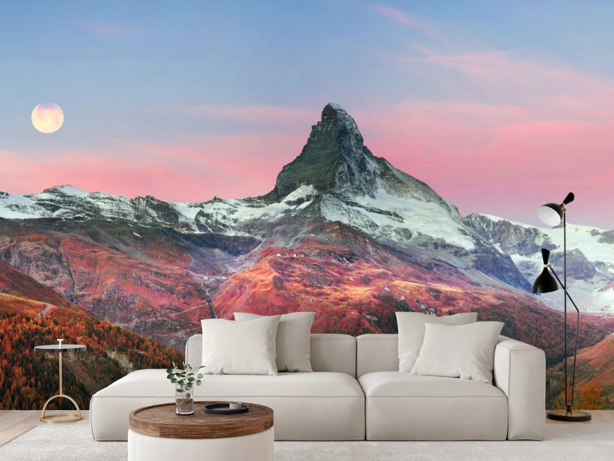 Fototapete Herbstliche panoramaaufnahme des Matterhorns bei sonnenuntergang
