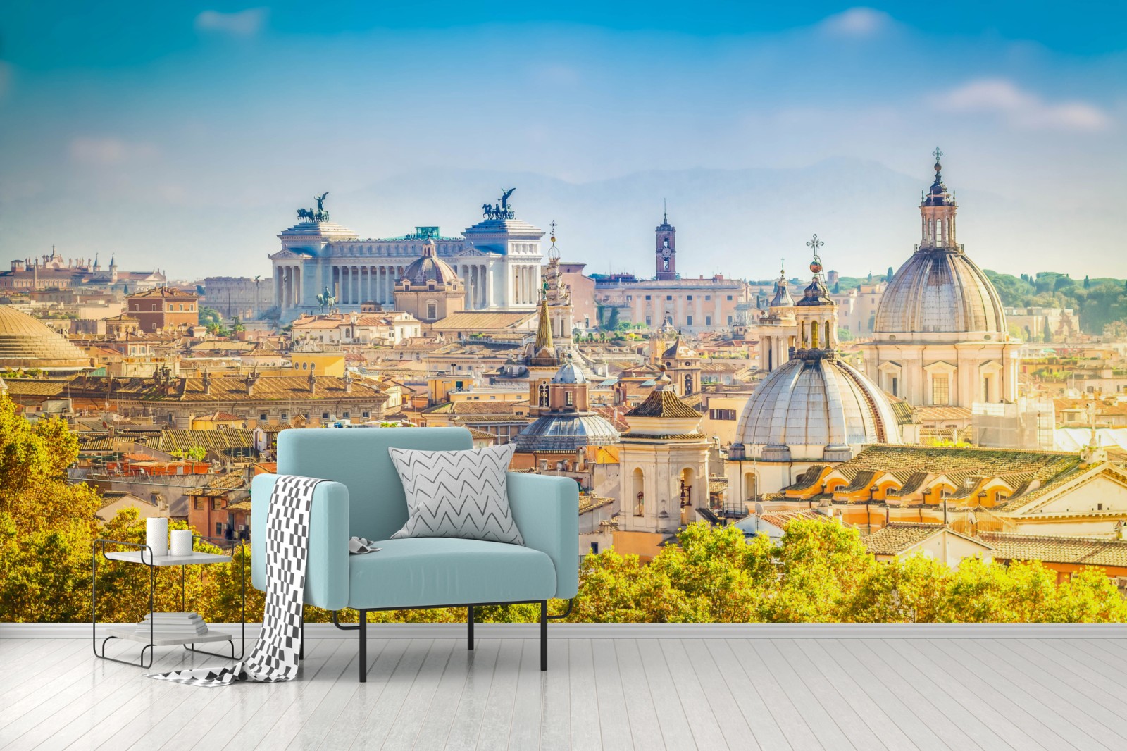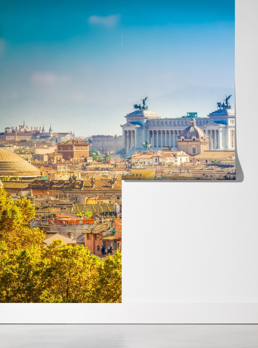 Bringen Sie sonnige italienische Atmosphäre in Ihr Zuhause mit dieser detailreichen Skyline von Rom.