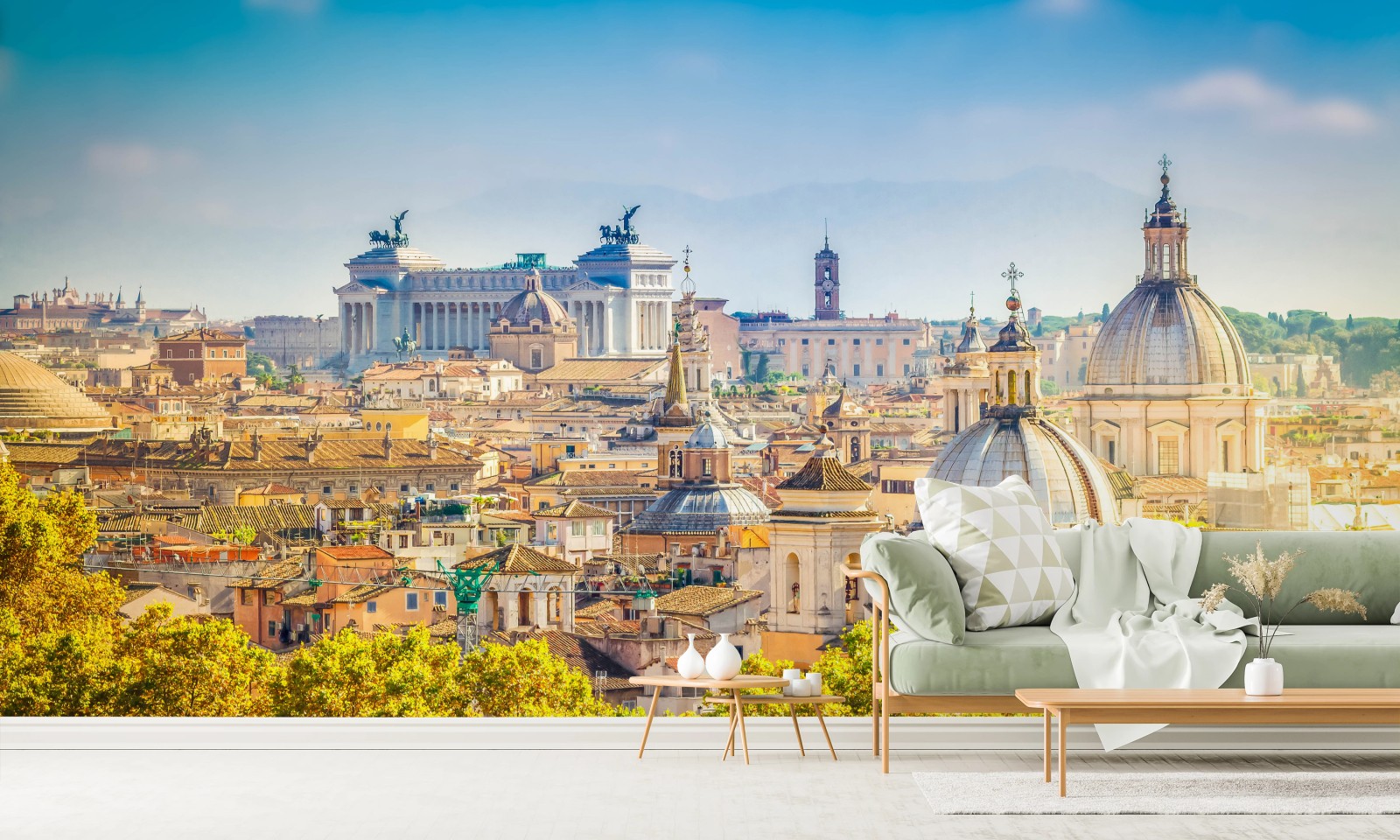 Fototapete Sonnige skyline von Rom mit kuppeln