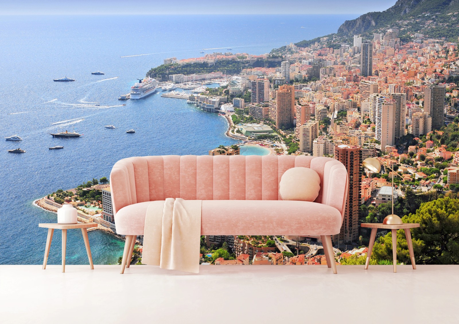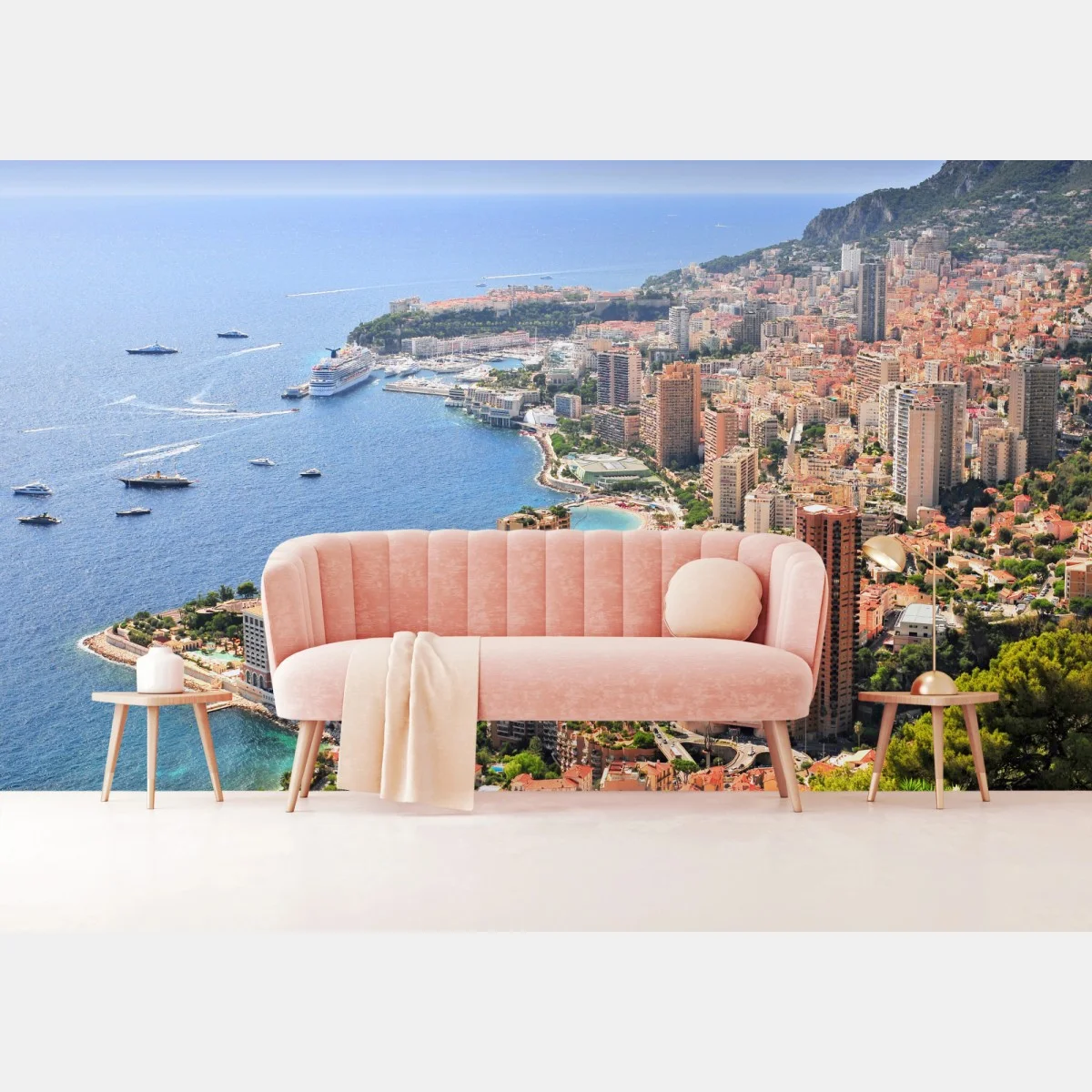Fototapete Sonnige panoramasicht einer küstenstadt