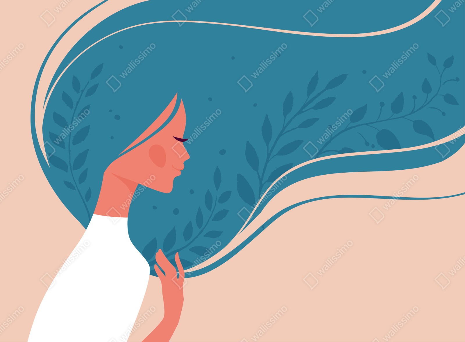 Fototapete sanftes blumiges profil mit fließendem haar