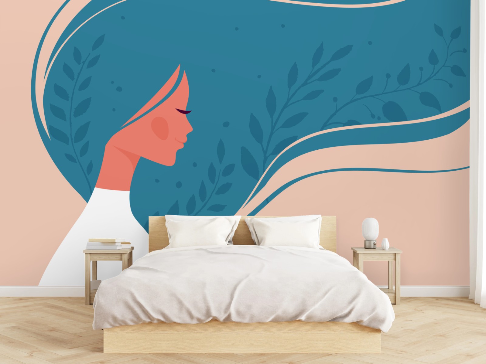 Fototapete Sanftes blumiges profil mit fließendem haar