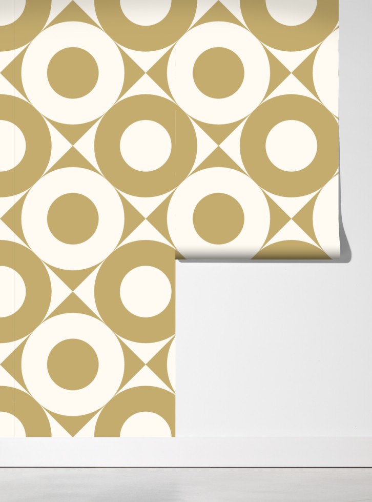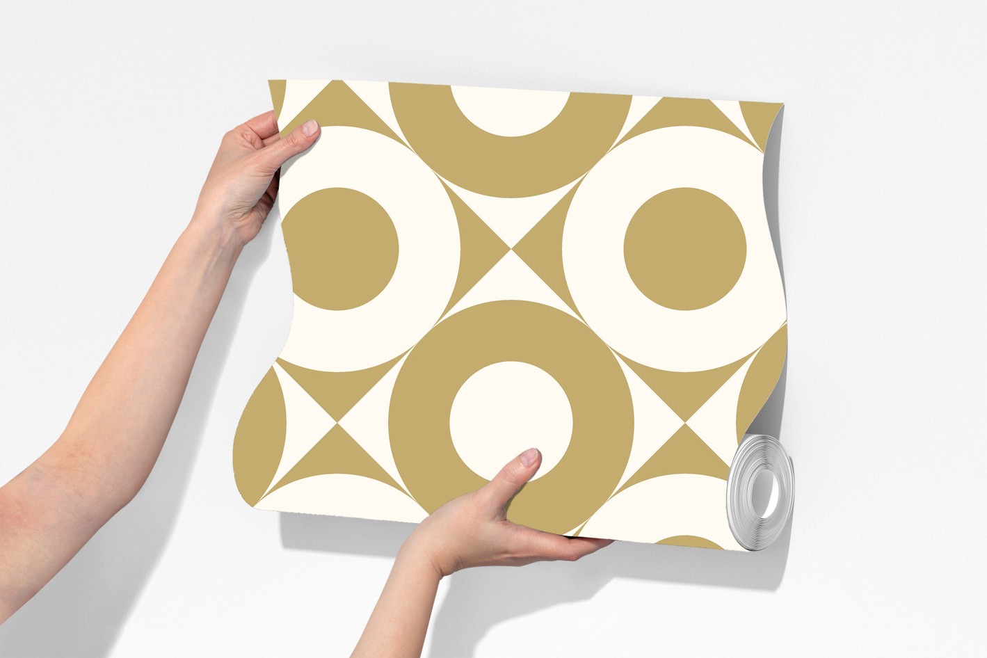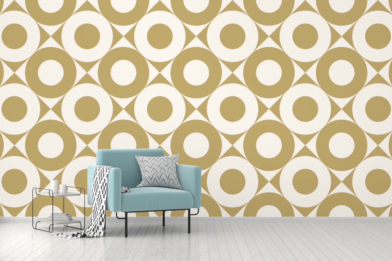 Verleihen Sie Ihrem Raum Wärme und Retro-Charme mit einem goldenen geometrischen Muster.