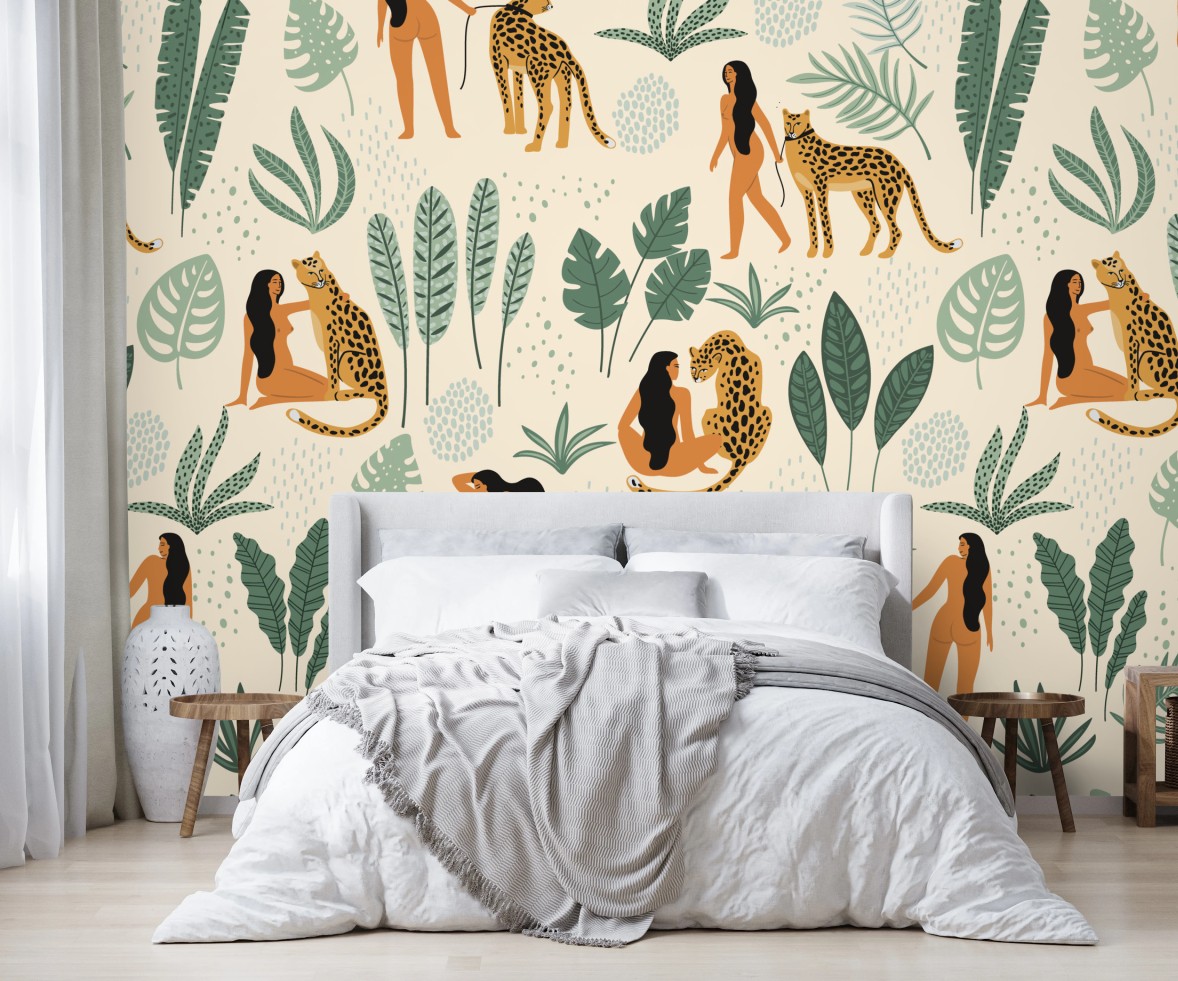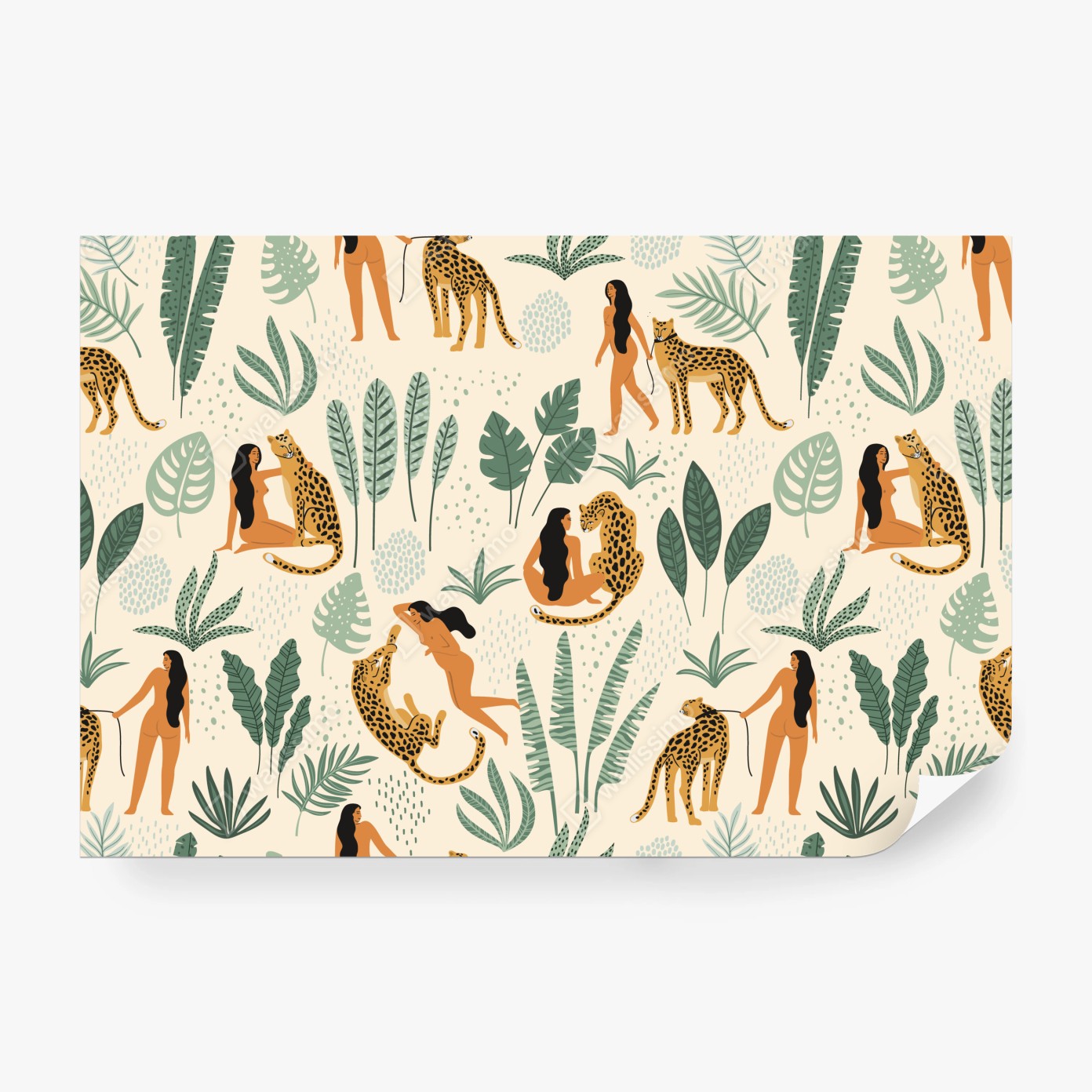 Fototapete Exotisches muster mit geparden und blättern