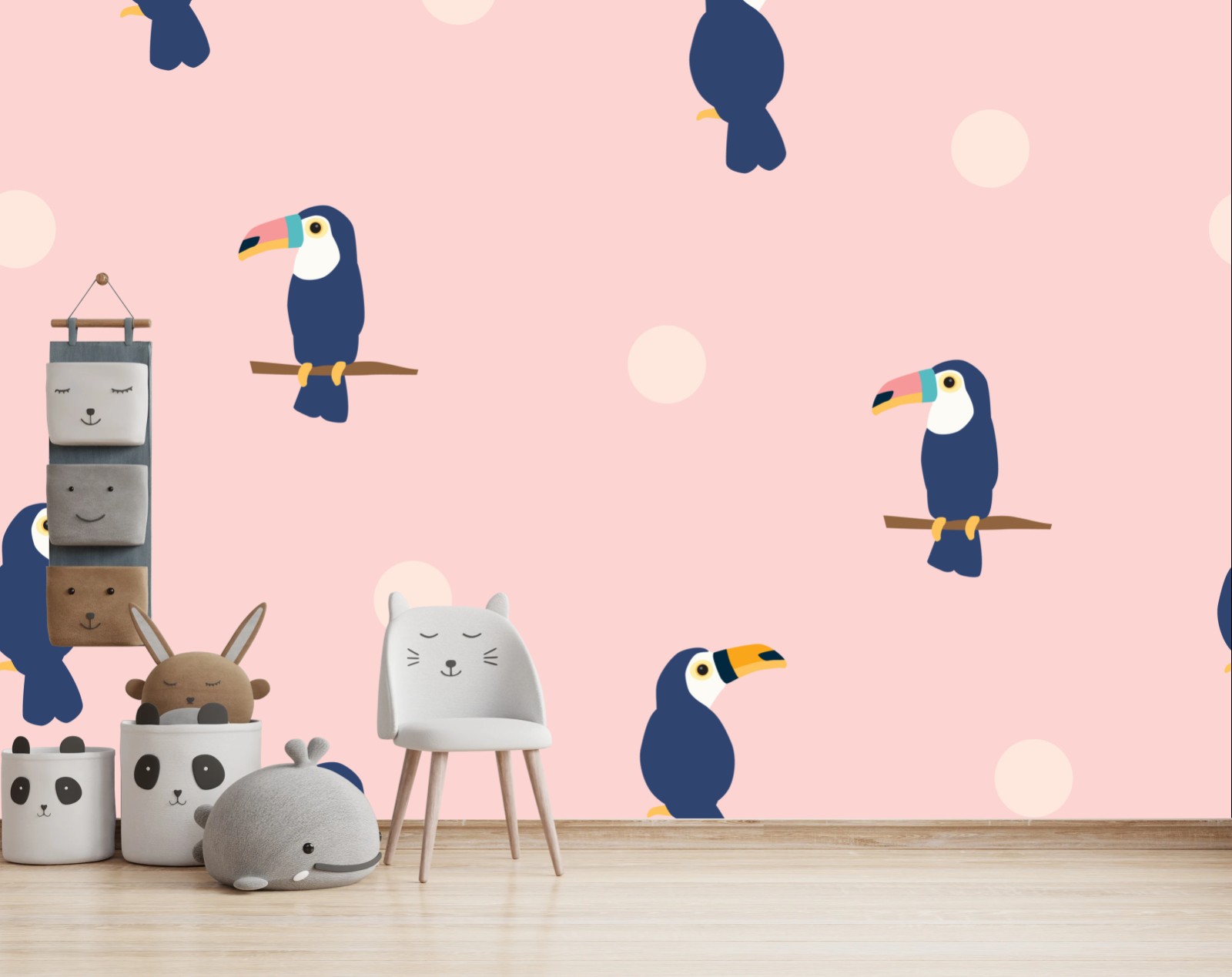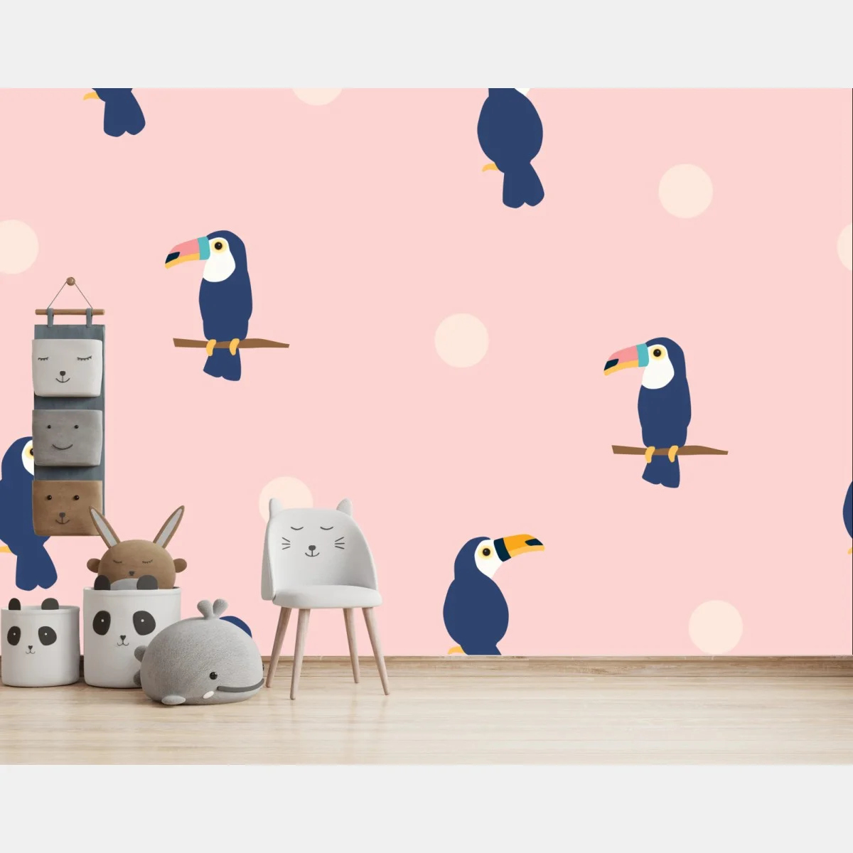 Fototapete Verspieltes tukanmuster auf pastellrosa