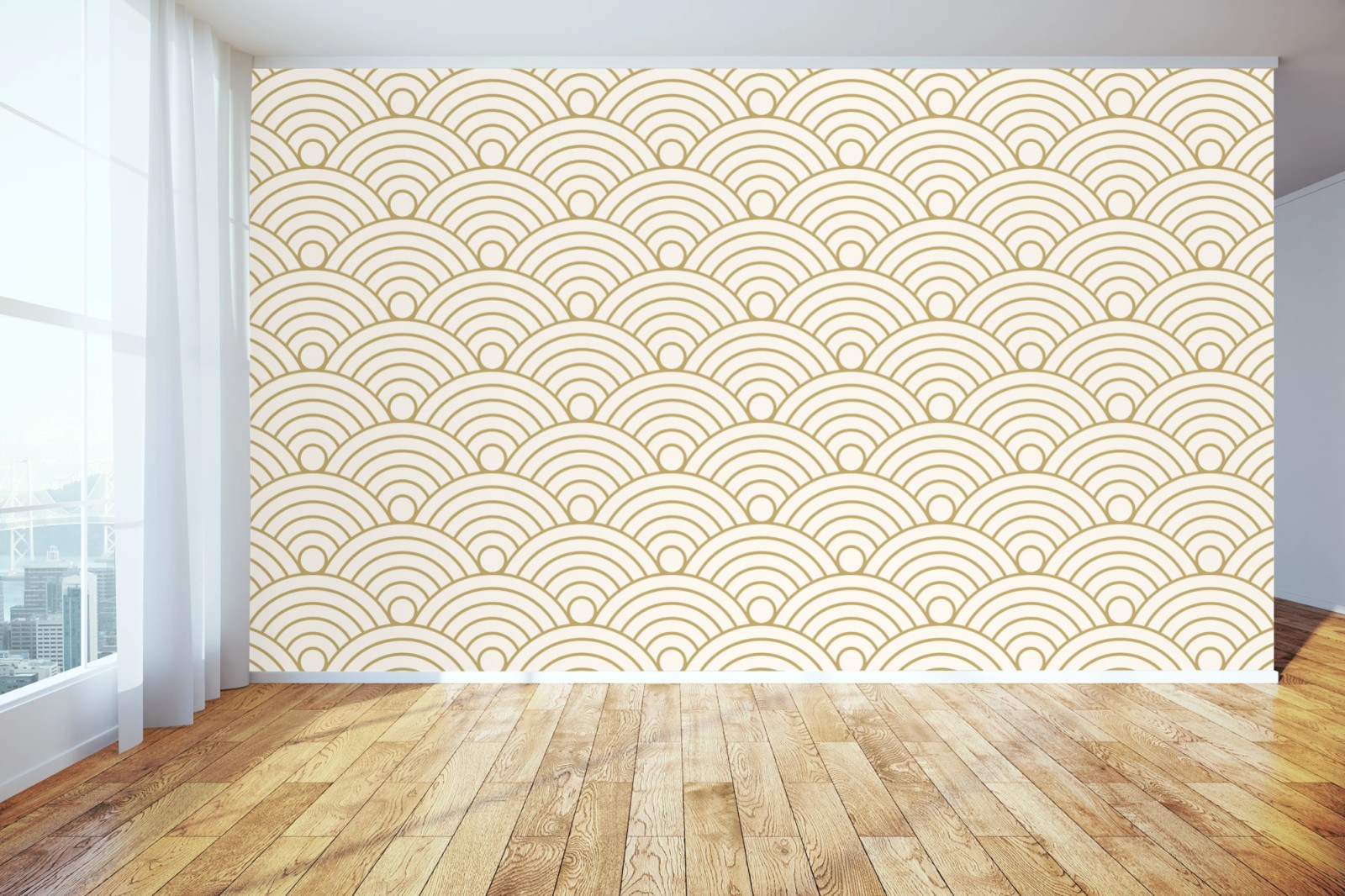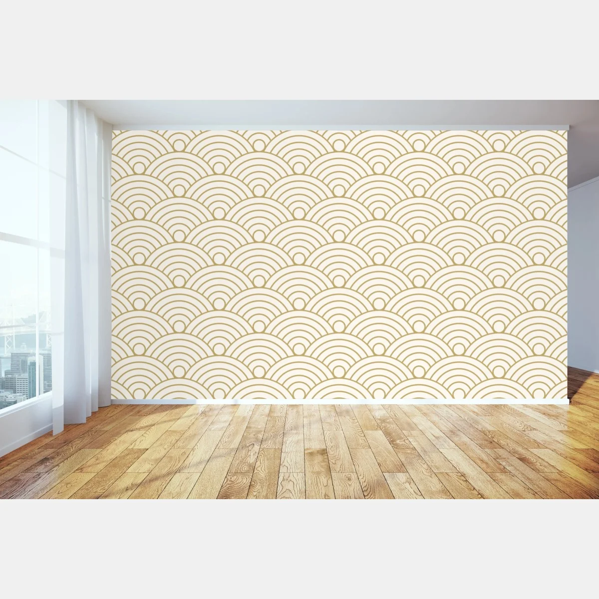 Fototapete Goldenes seigaiha wellenmuster