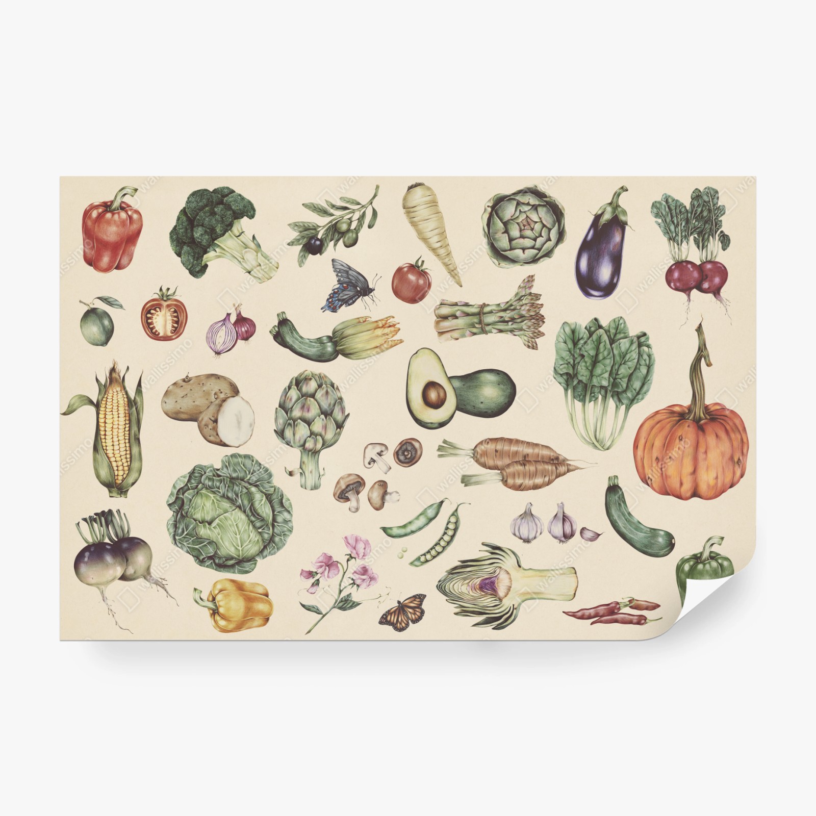 Fototapete Handgezeichnetes botanisches gemüsemotiv