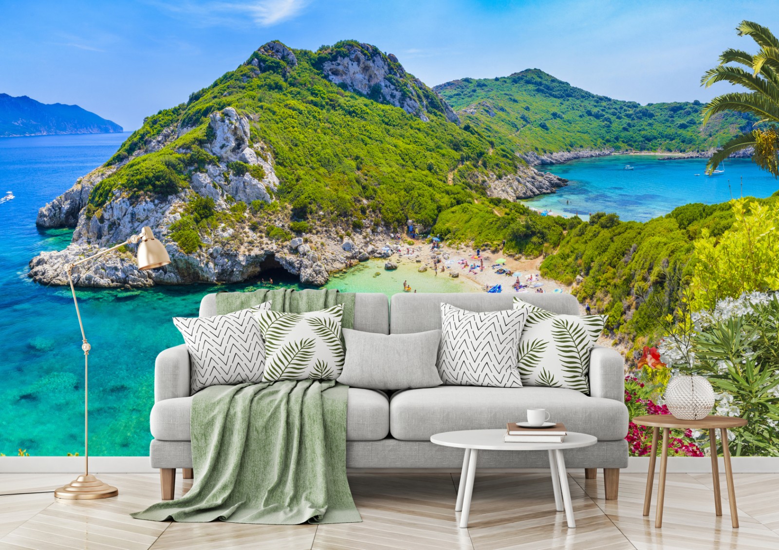 Fototapete Porto Timoni panoramischer strand, Korfu