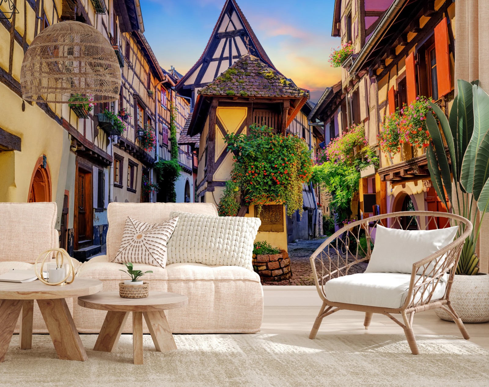 Fototapete Malerische fachwerkstraße in Eguisheim, Elsass