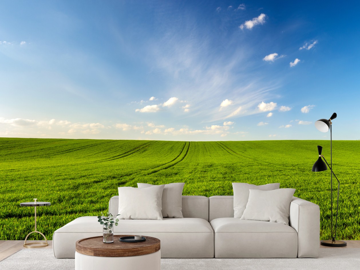 Fototapete Frühlingsgrüne wiesenpanorama