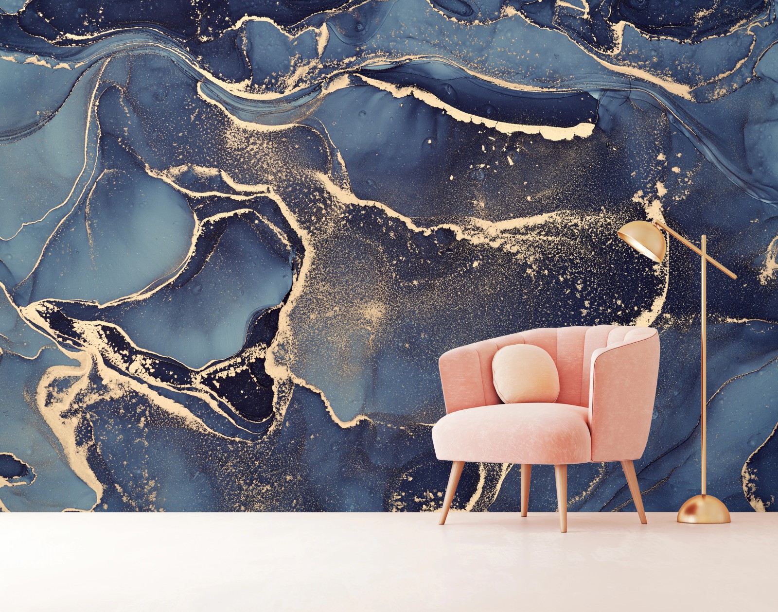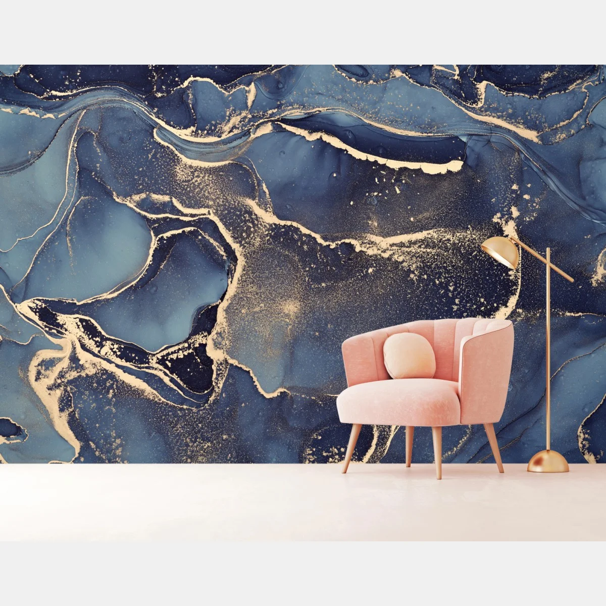 Fototapete Traumhafte abstrakte fließmalerei in blau und gold