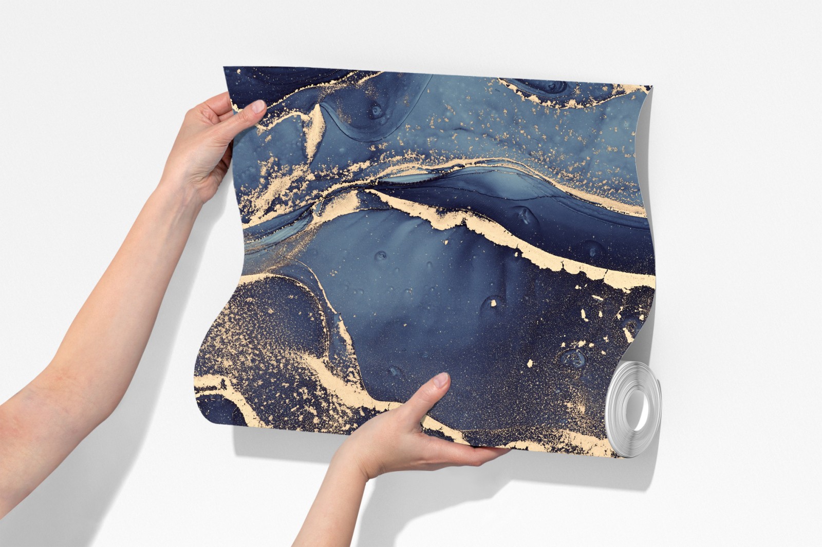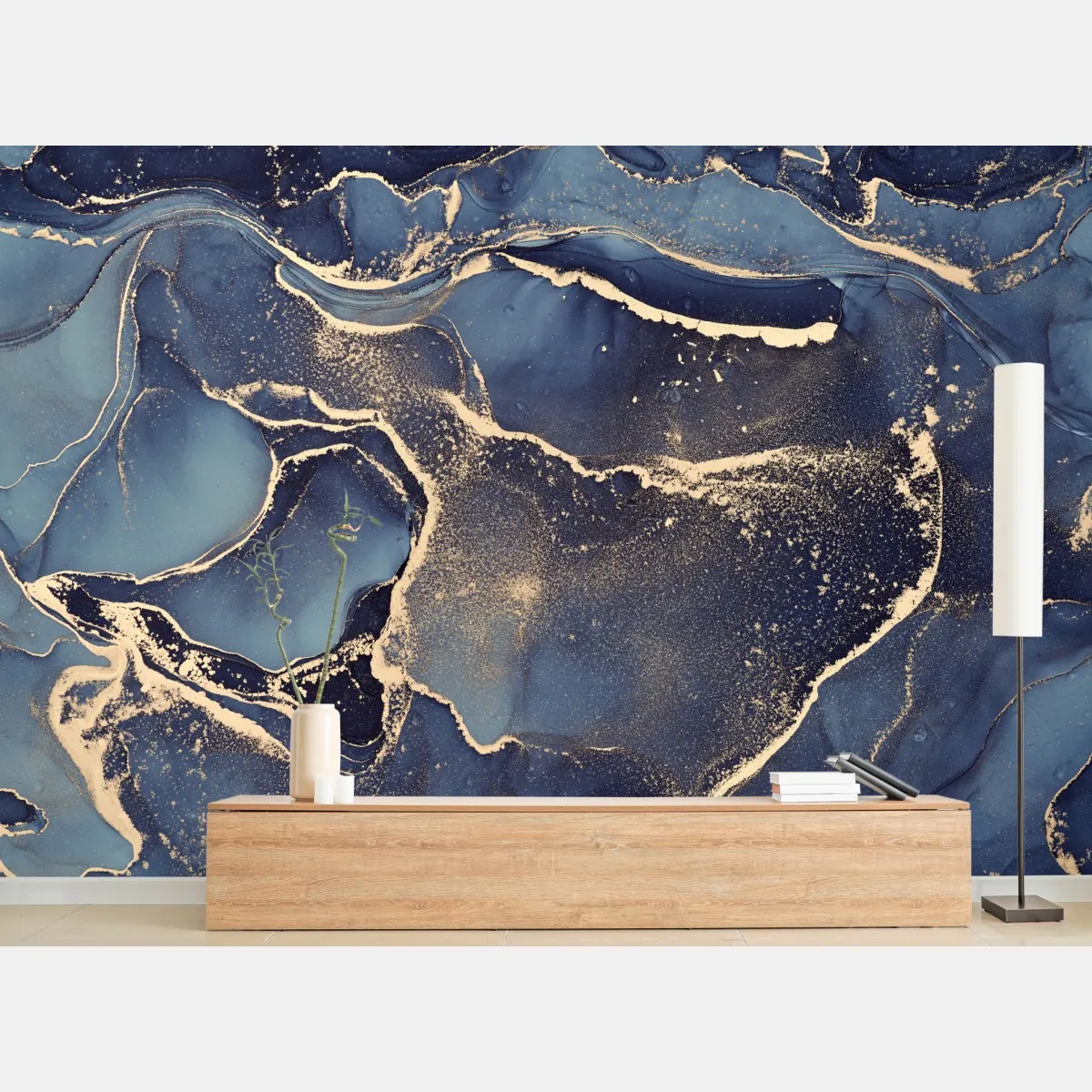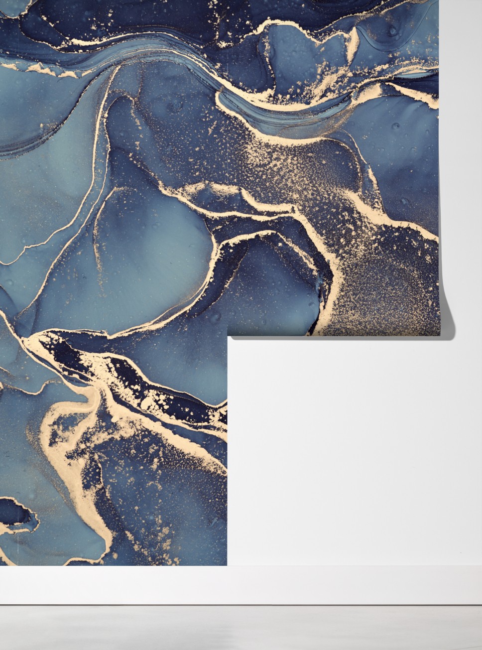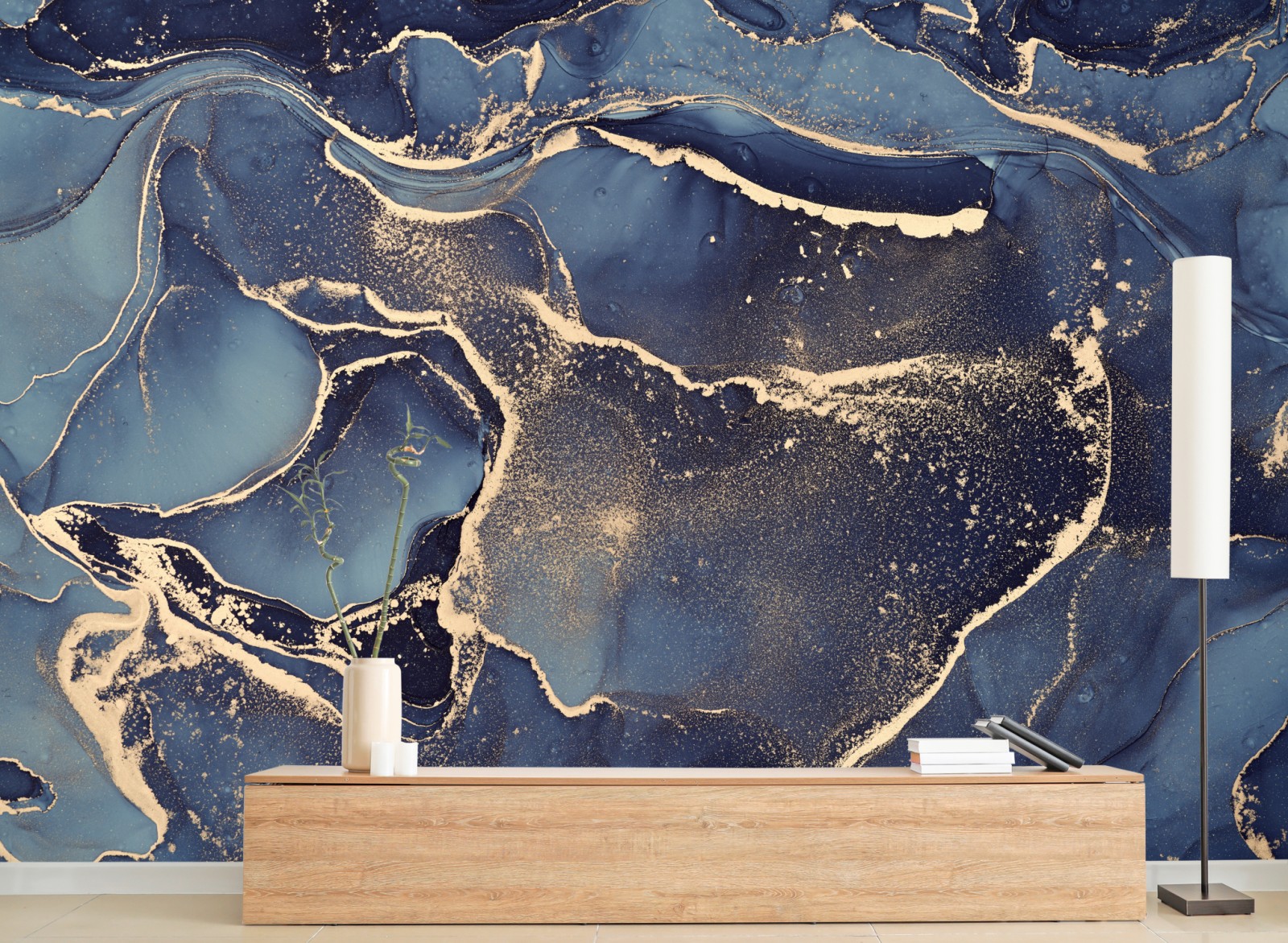 Fototapete traumhafte abstrakte fließmalerei in blau und gold – Wallnifity®