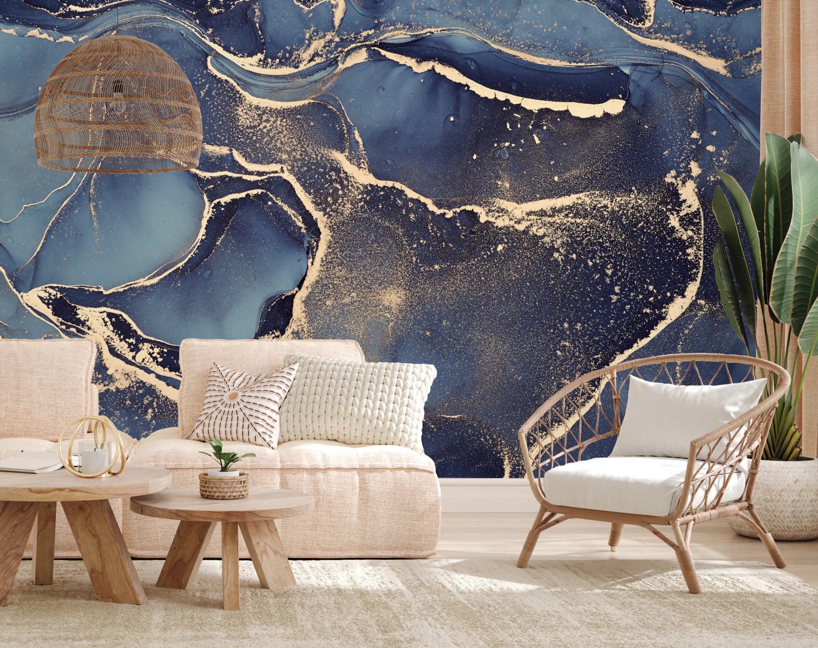 Fototapete Traumhafte abstrakte fließmalerei in blau und gold