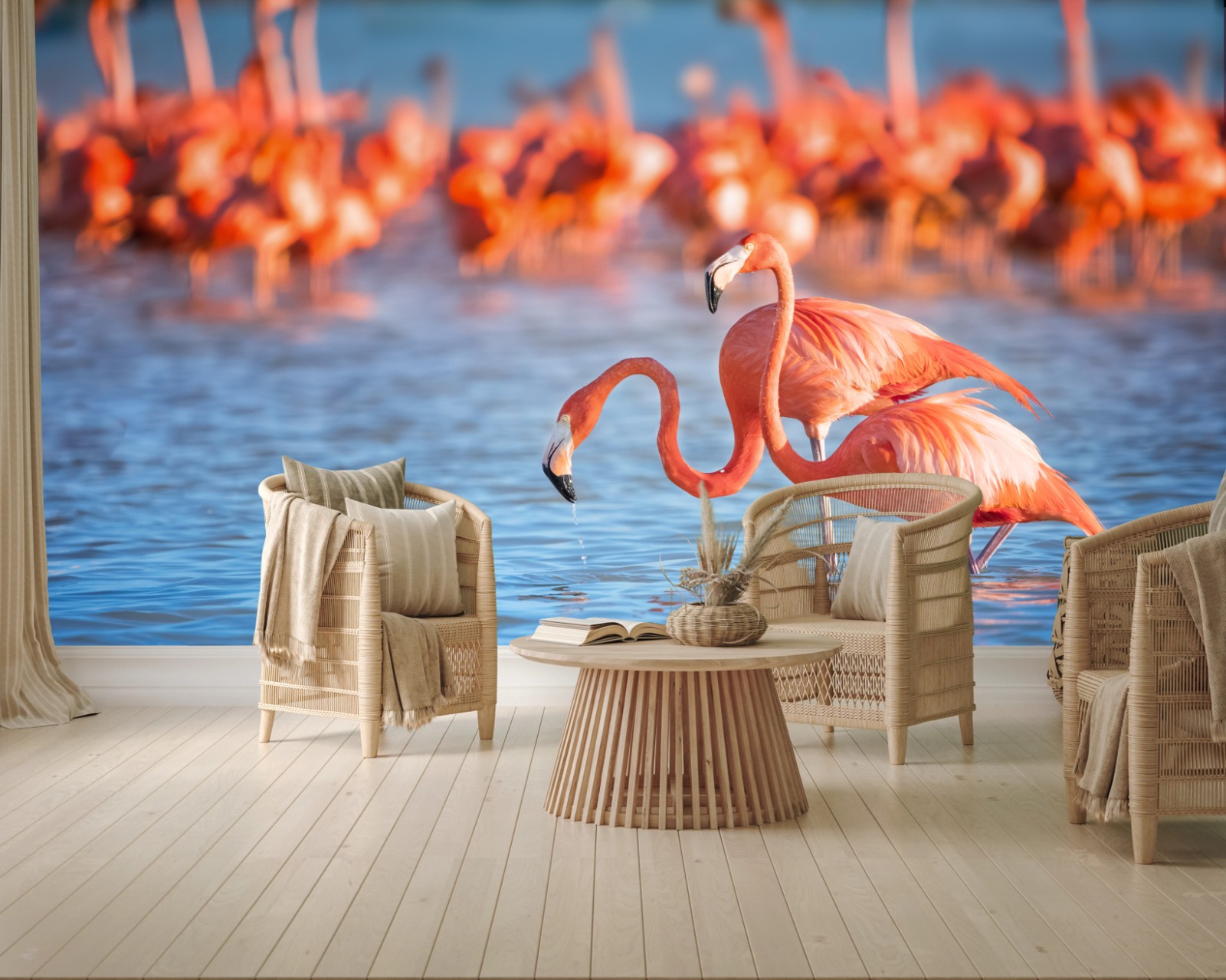 Fototapete Anmutige flamingos im flachen wasser
