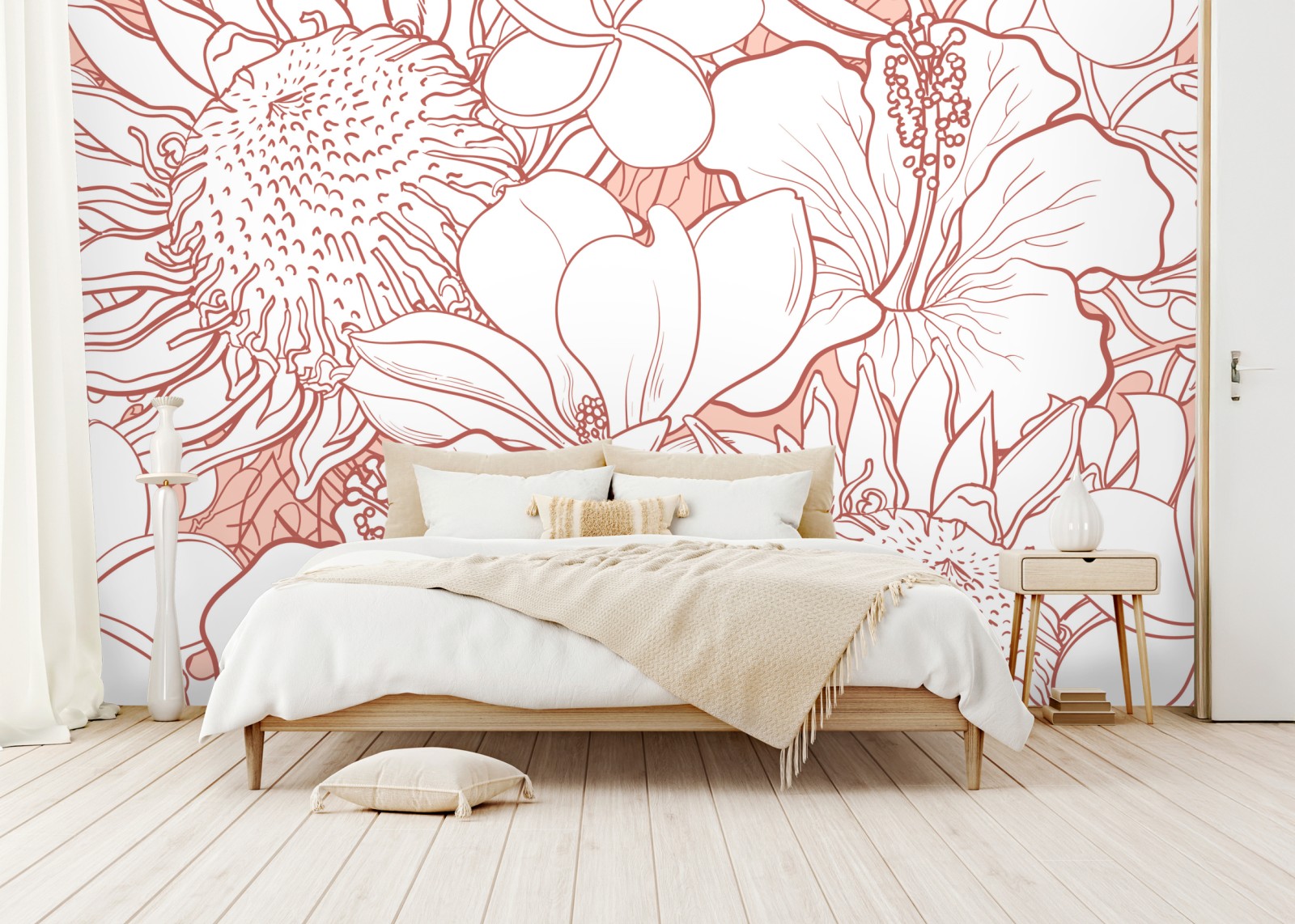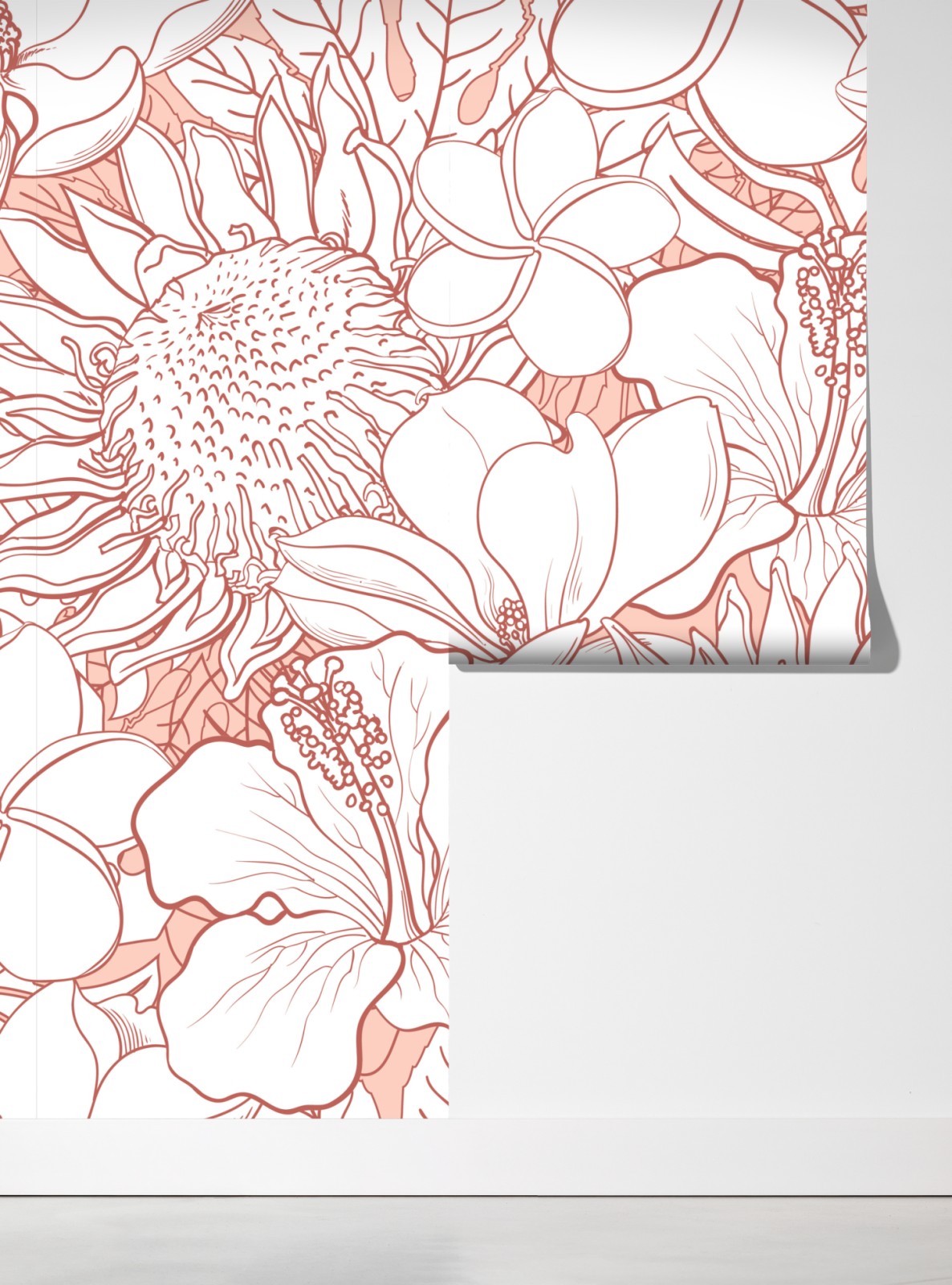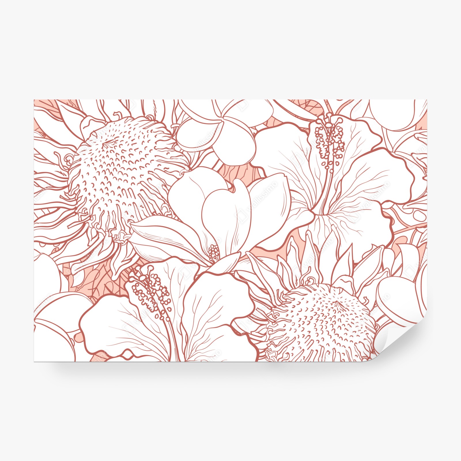 Fototapete zartes korallenfarbenes blumenmuster