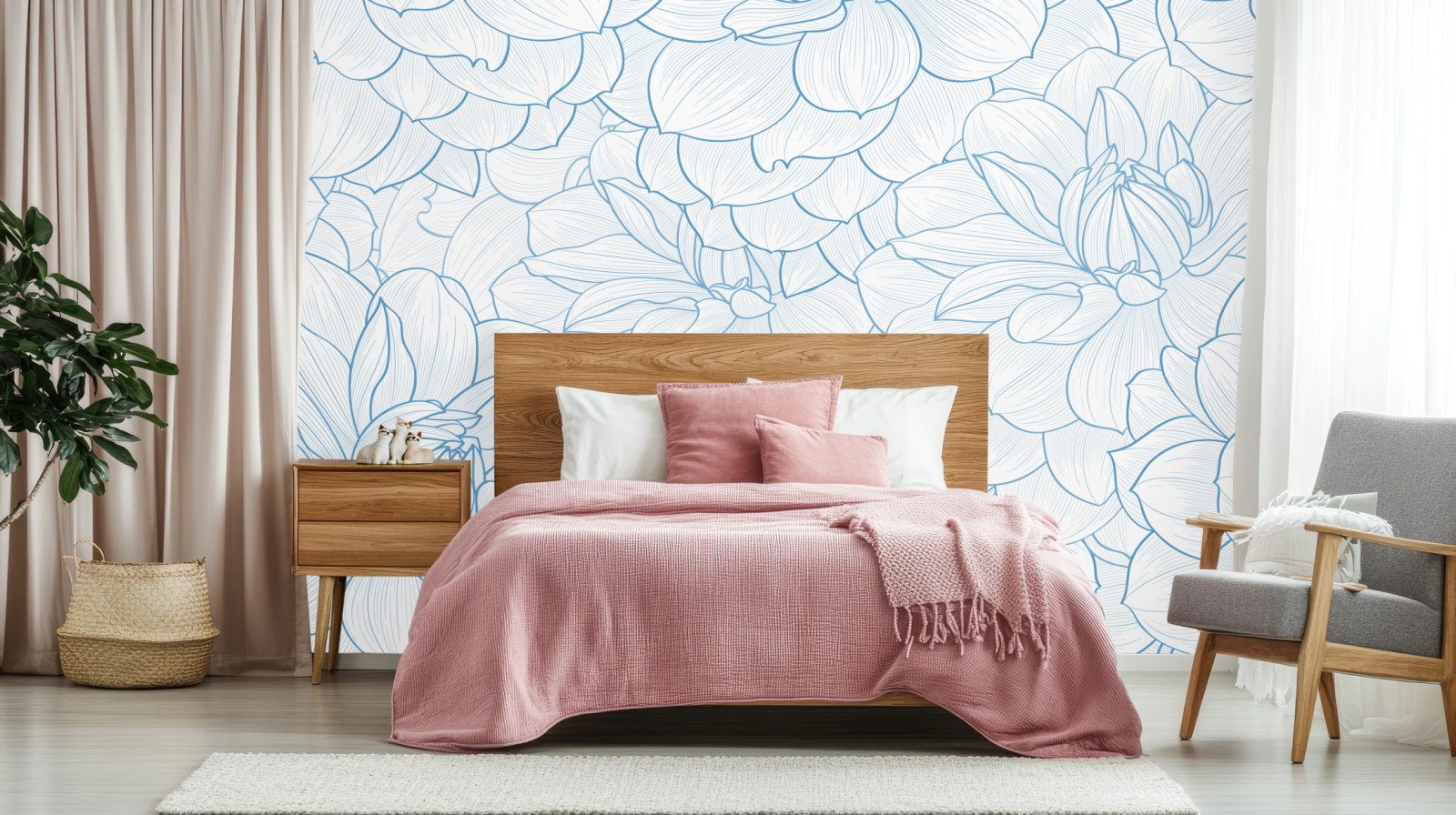 Fototapete Zartes blaues blumenmuster