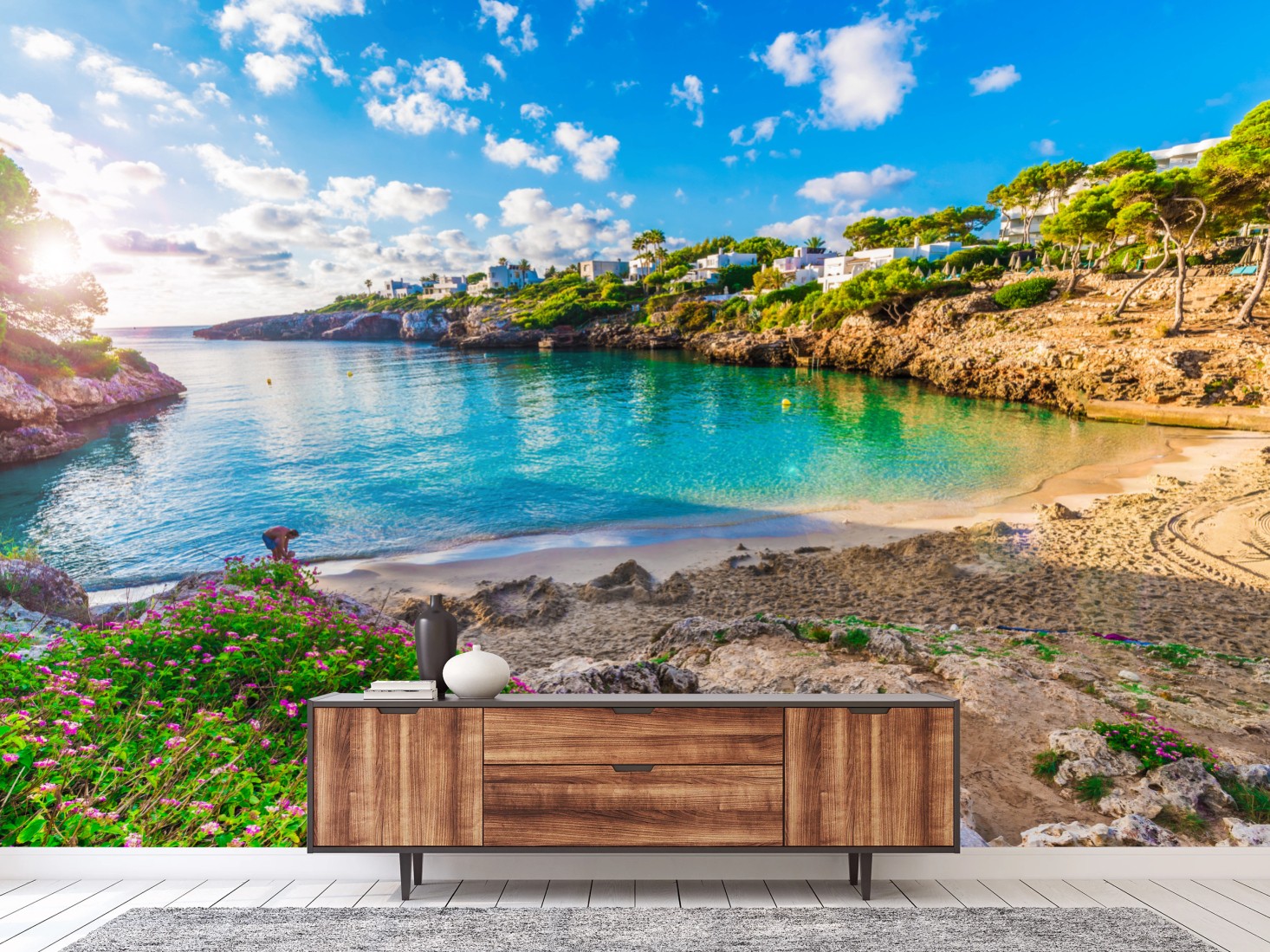 Fototapete Sonnige Cala Esmeralda türkisbucht