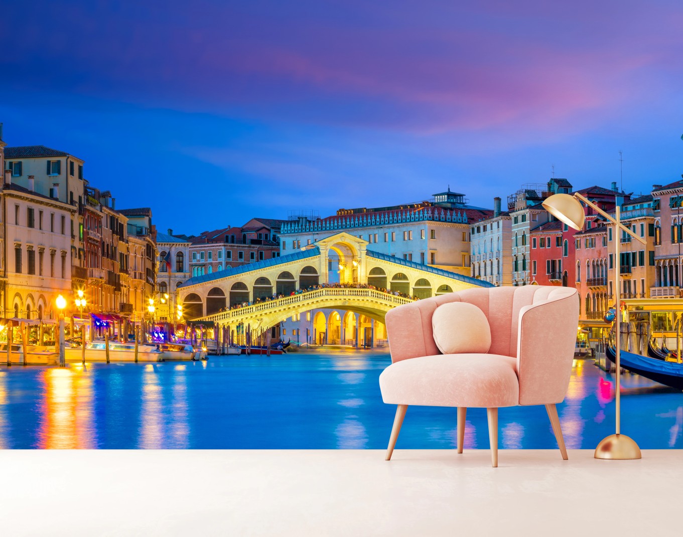 Fototapete Rialto brücke bei dämmerung, Venedig