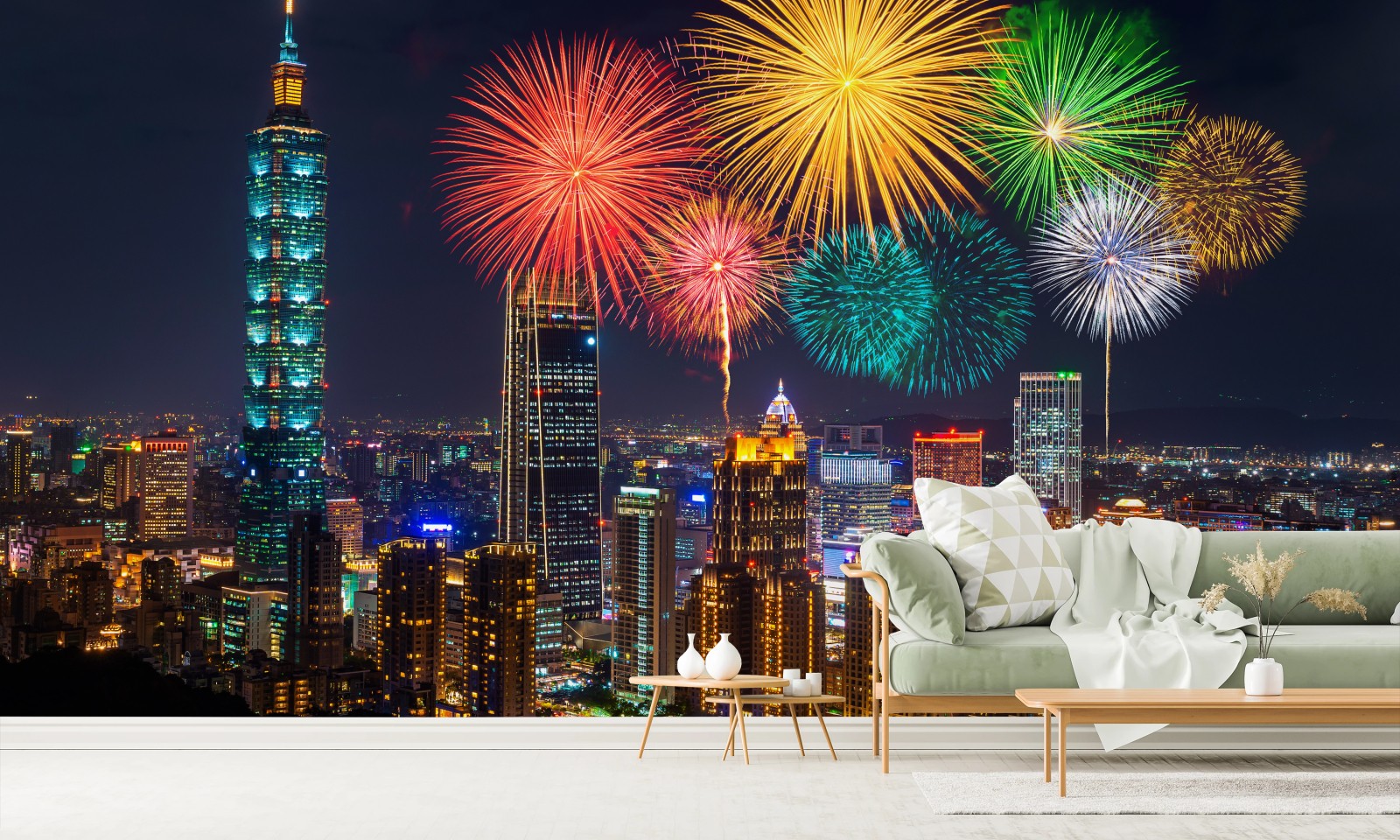 Fototapete Taipeh feuerwerk über der stadtsilhouette