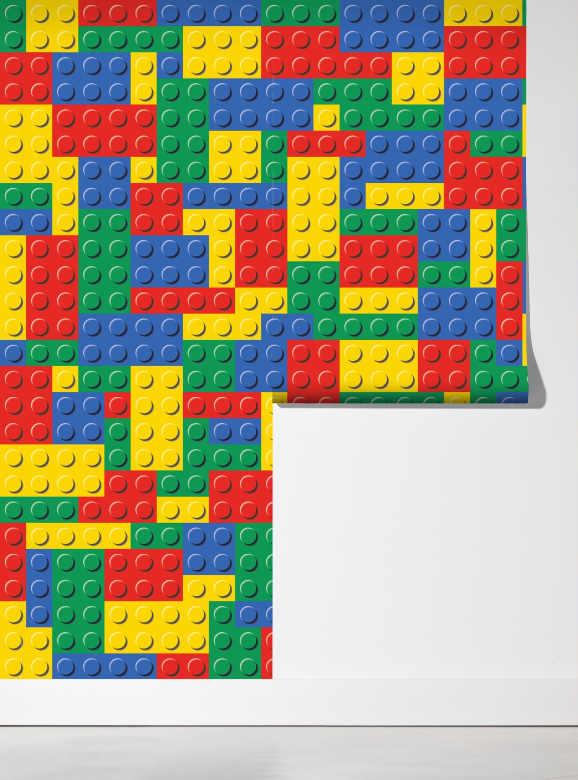 Helles und verspieltes Bausteinmuster bringt lebendige Farbe ins Kinderzimmer und Spielbereich.