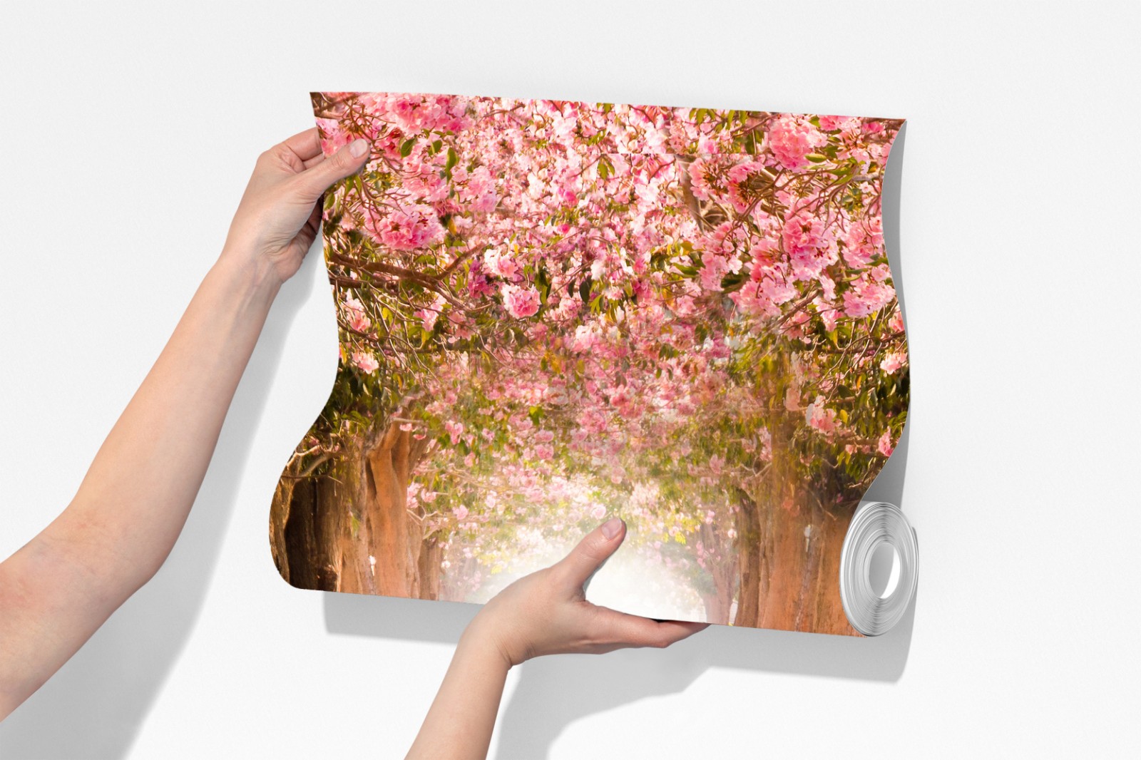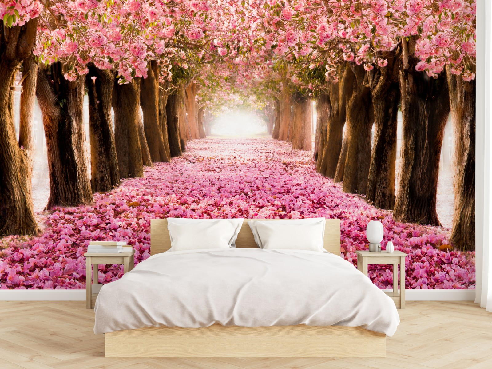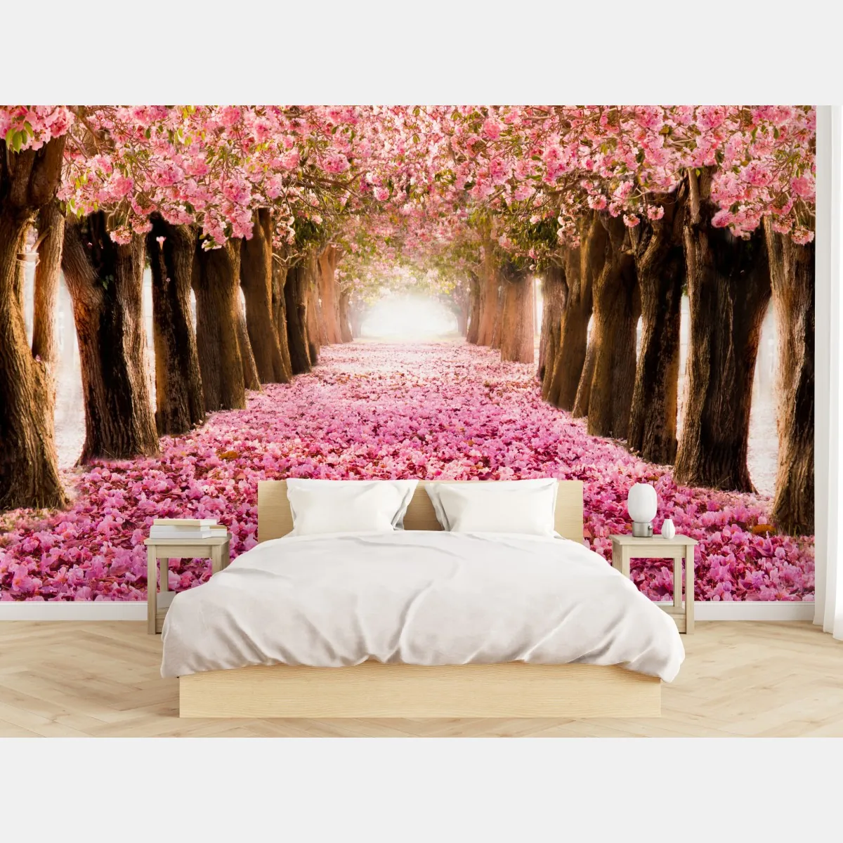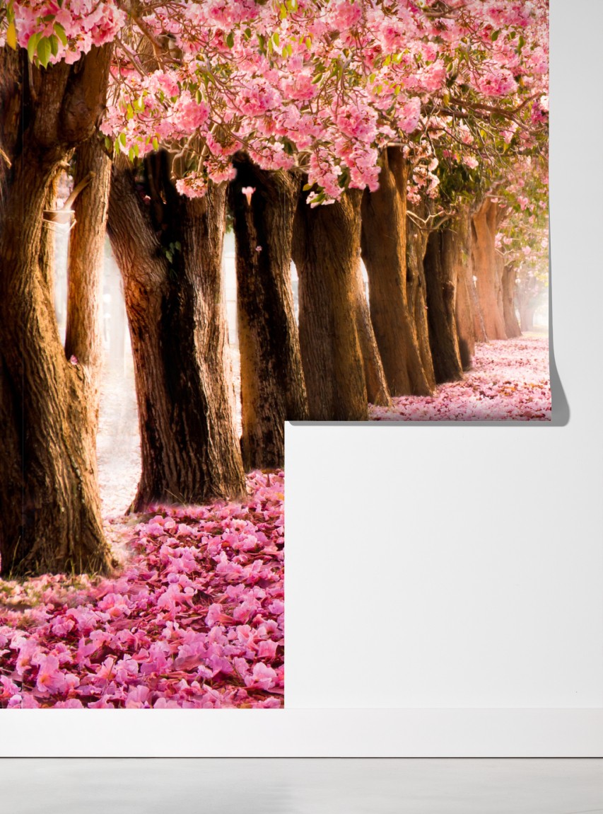Verwandeln Sie Ihren Raum mit einem traumhaften Pfad aus rosa Blüten, der natürliche Ruhe und romantischen Charme ausstrahlt.