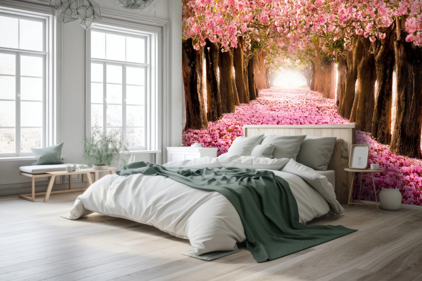Fototapete Rosa blütenallee unter kirschbäumen